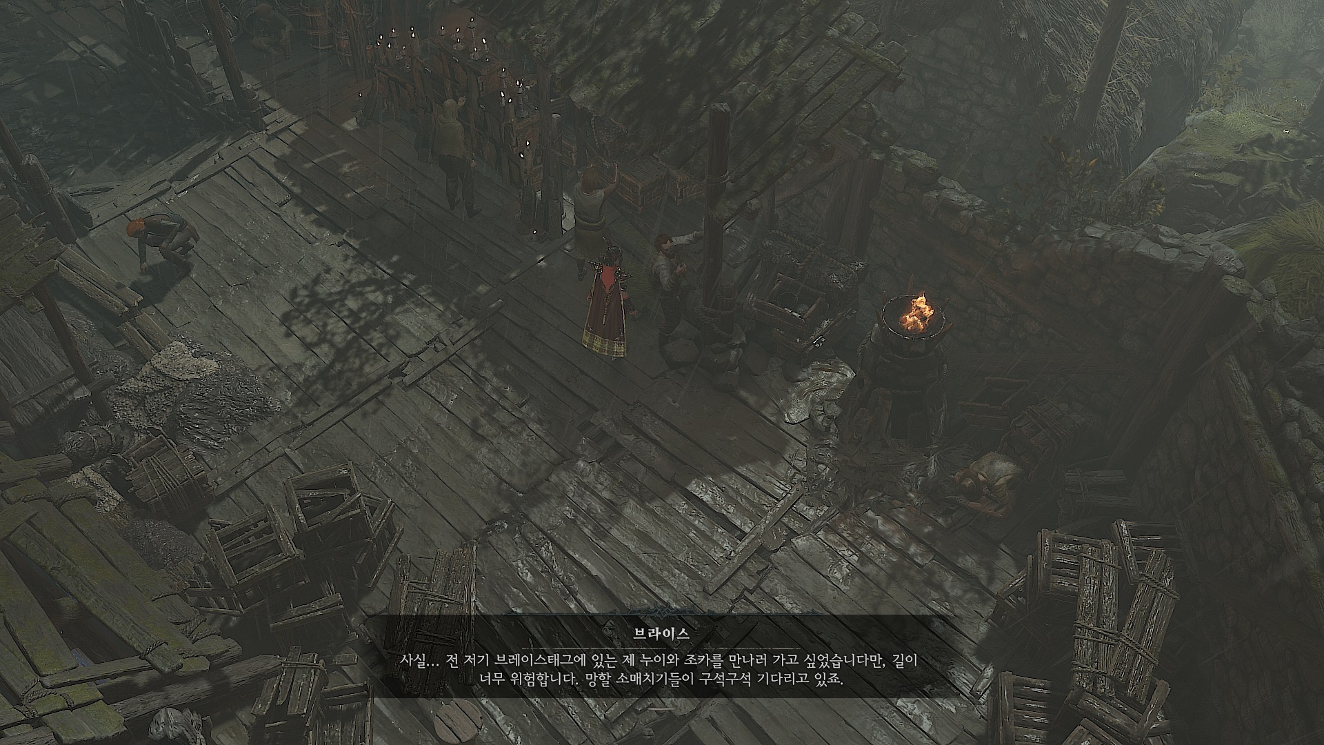 브라이스는 누이와 조카를 만나고 싶지만 길이 위험해서 가질 못한다. 소매치기, 즉 산적들이 있다는 것. 그래서 그들을 처단해 달라고 한다. (말이 단속이지, 처단하라는 거지 뭐..)