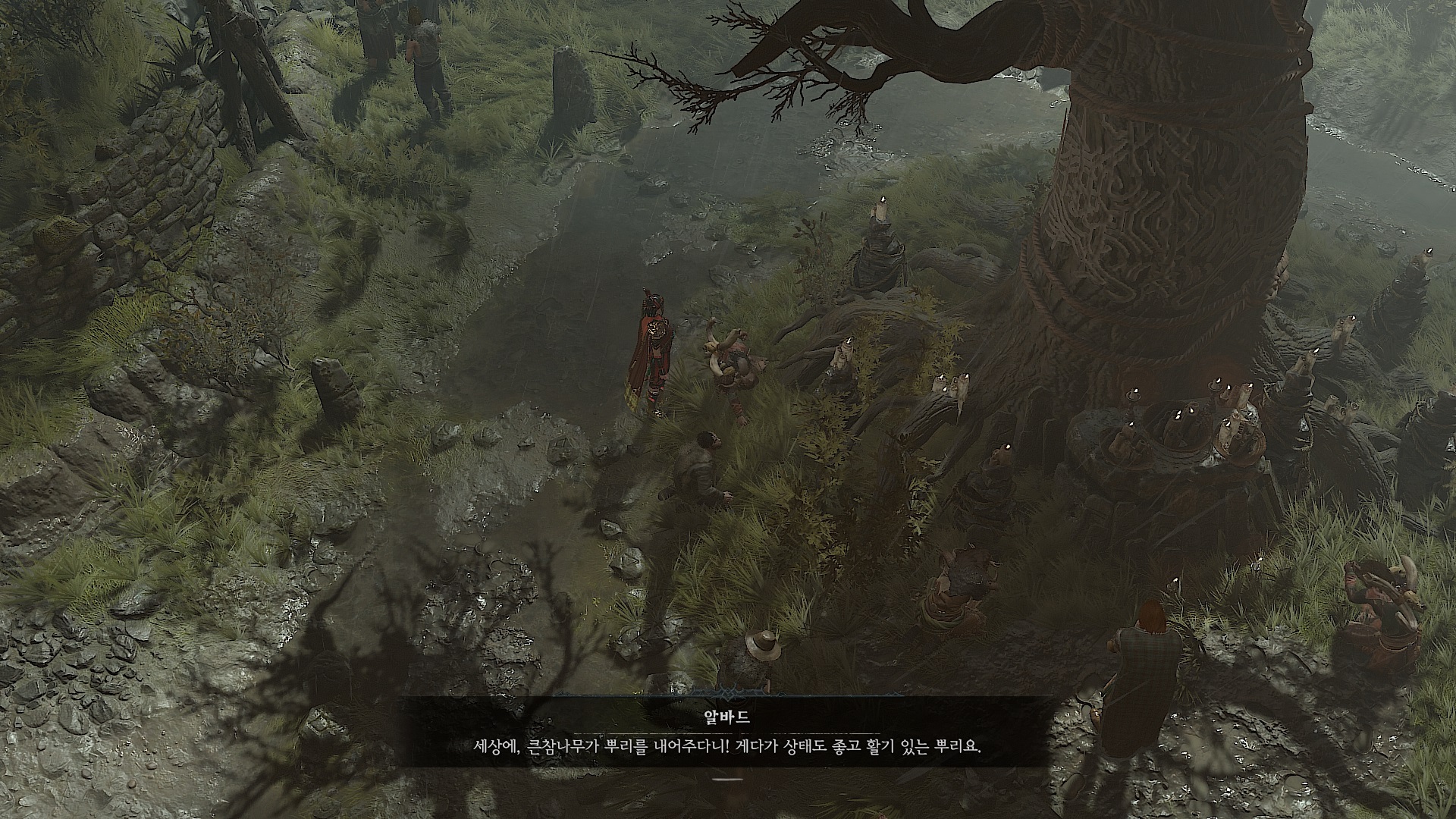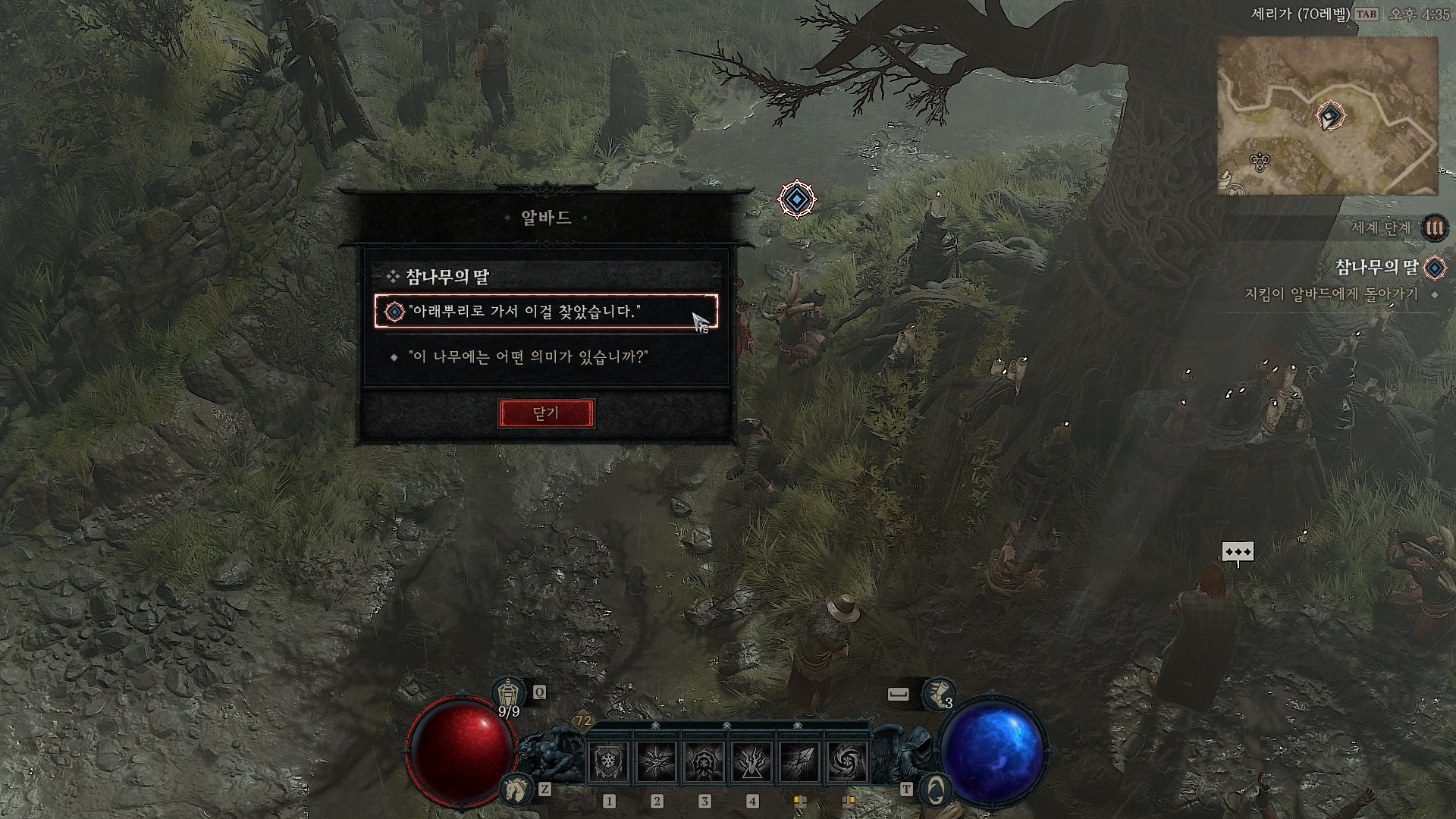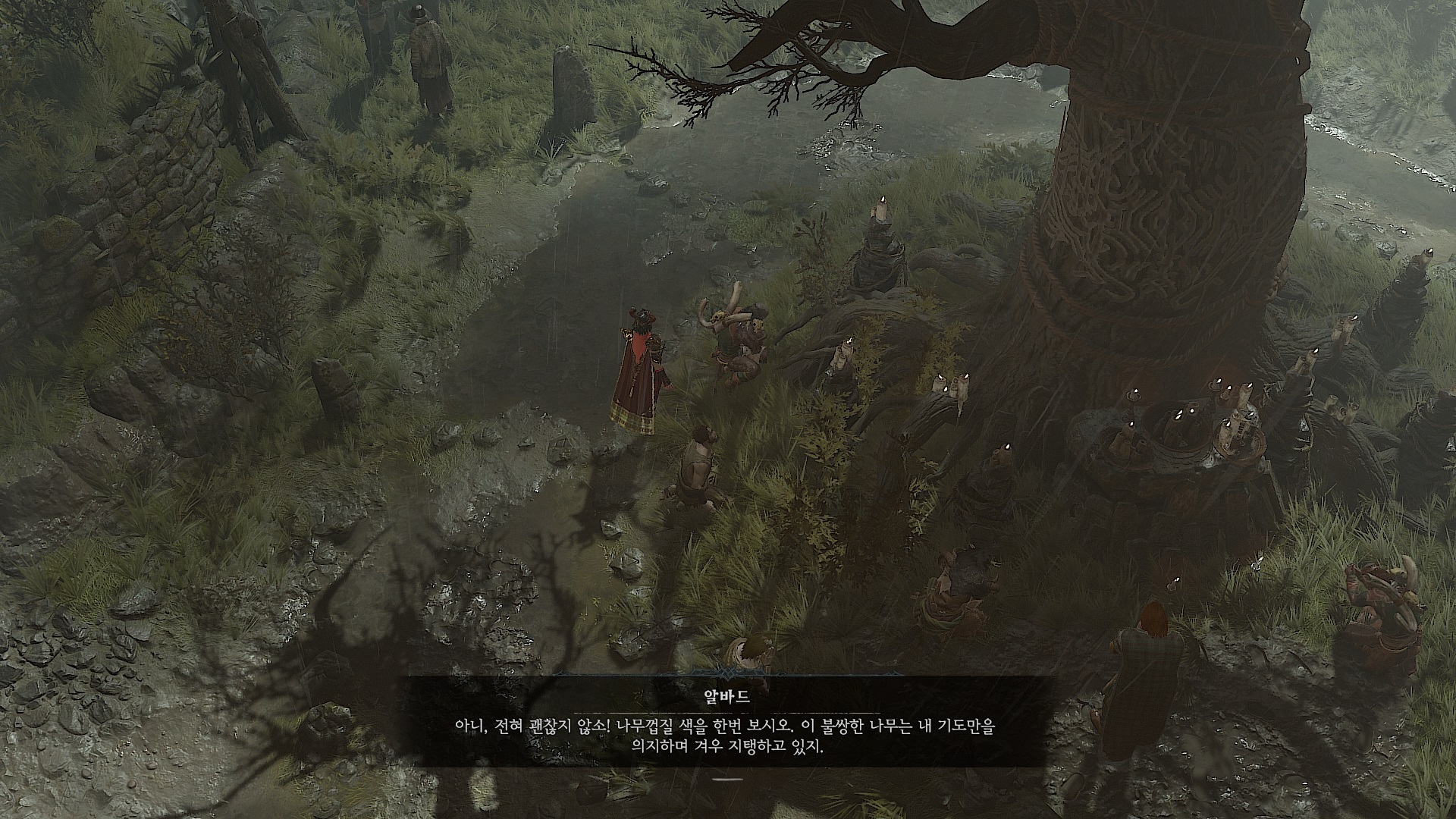 알바드는 나무가 다시 생기를 찾을 것이라며 기뻐한다. 퀘스트 완료 보상으로 중얼거리는 보관함을 준다.
