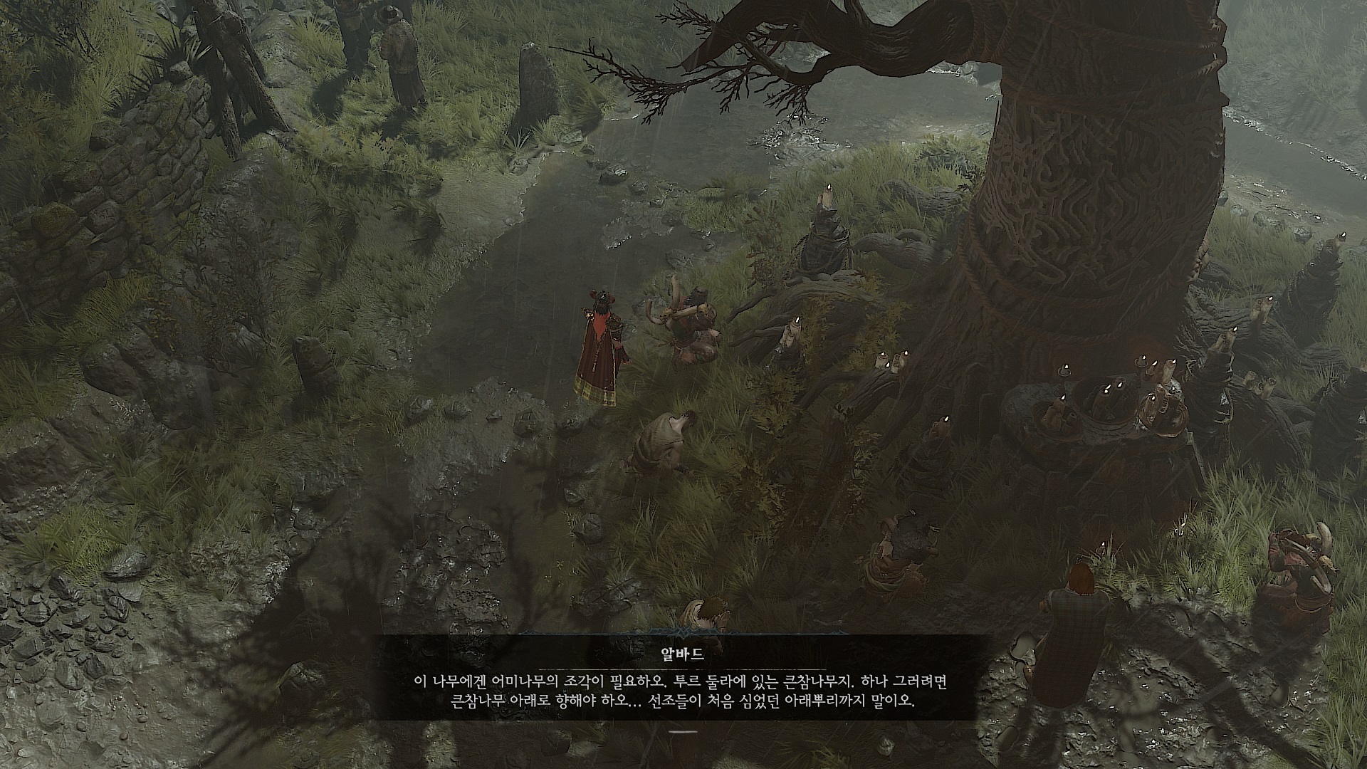 기도로 겨우 연명하고 있는 나무. 나무를 구하기 위해서는 어미나무 조각이 필요하니 구해 달라고 한다.