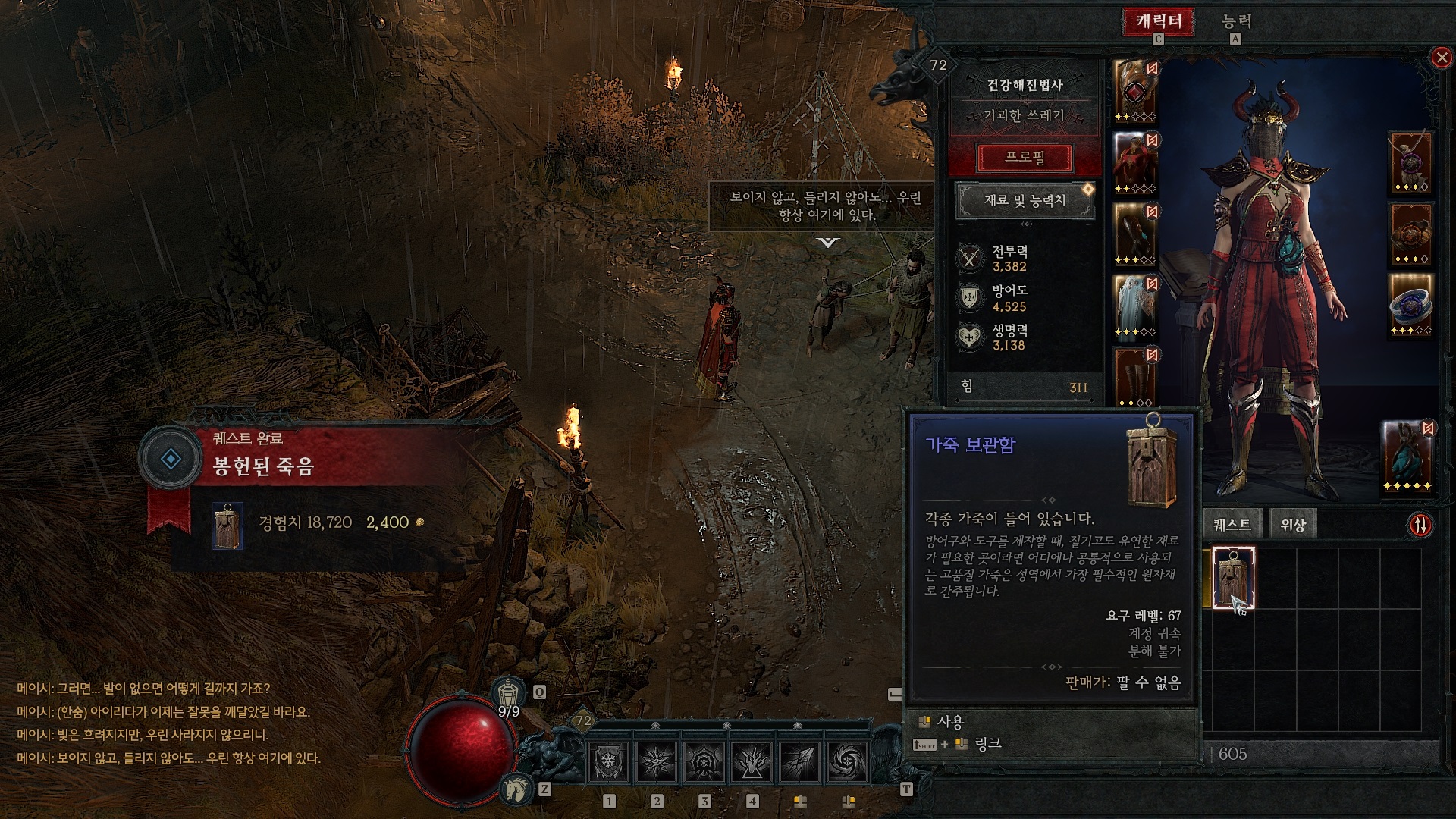 대화가 끝나면 퀘스트가 완료되고 보상으로 가죽 보관함을 준다.
