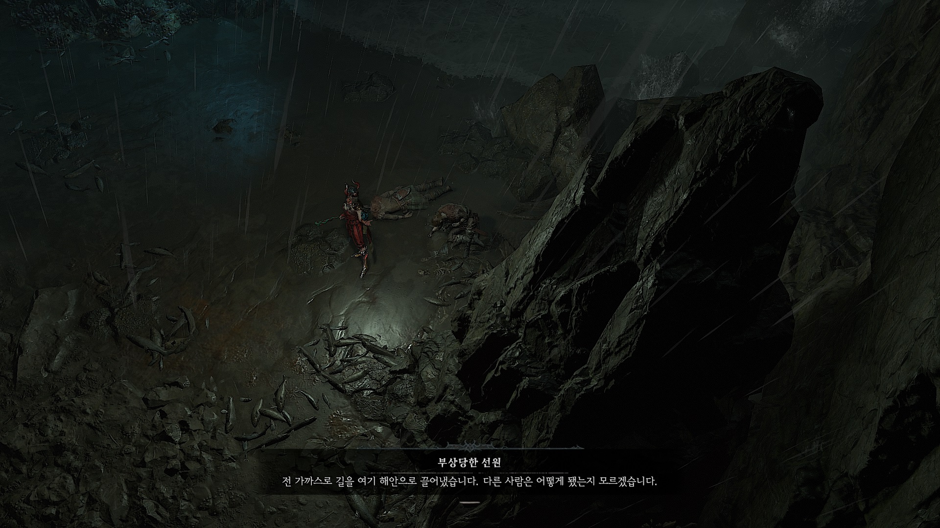 해당 위치로 가면 부상당한 선원이 있다. 그와 대화하자.
