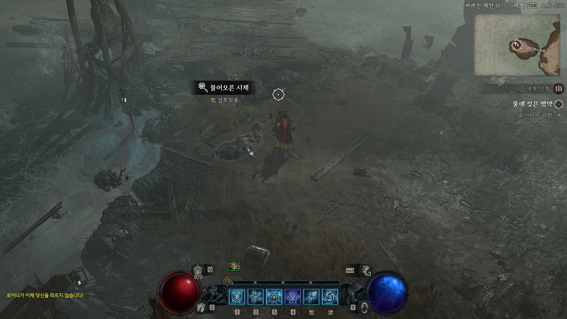 아래에서 들려오는 속삭임 퀘스트 완료 이후 바로 진행되는 퀘스트다. 해당 지역으로 가서 로이나와 대화하자.