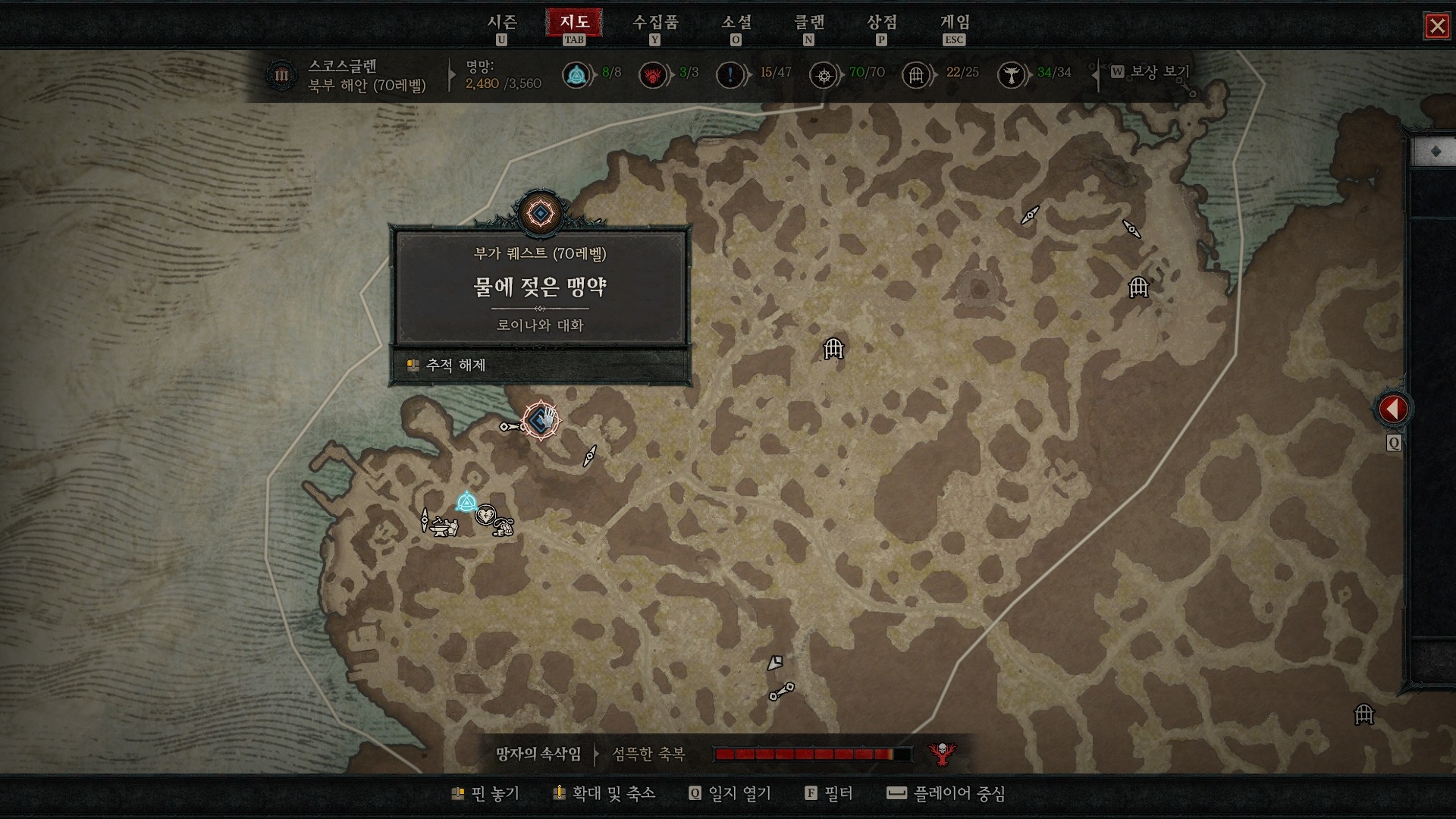 5개를 찾았지만 아직 부족하다는 로이나.. 서쪽에 있는 해안을 확인하러 가자.