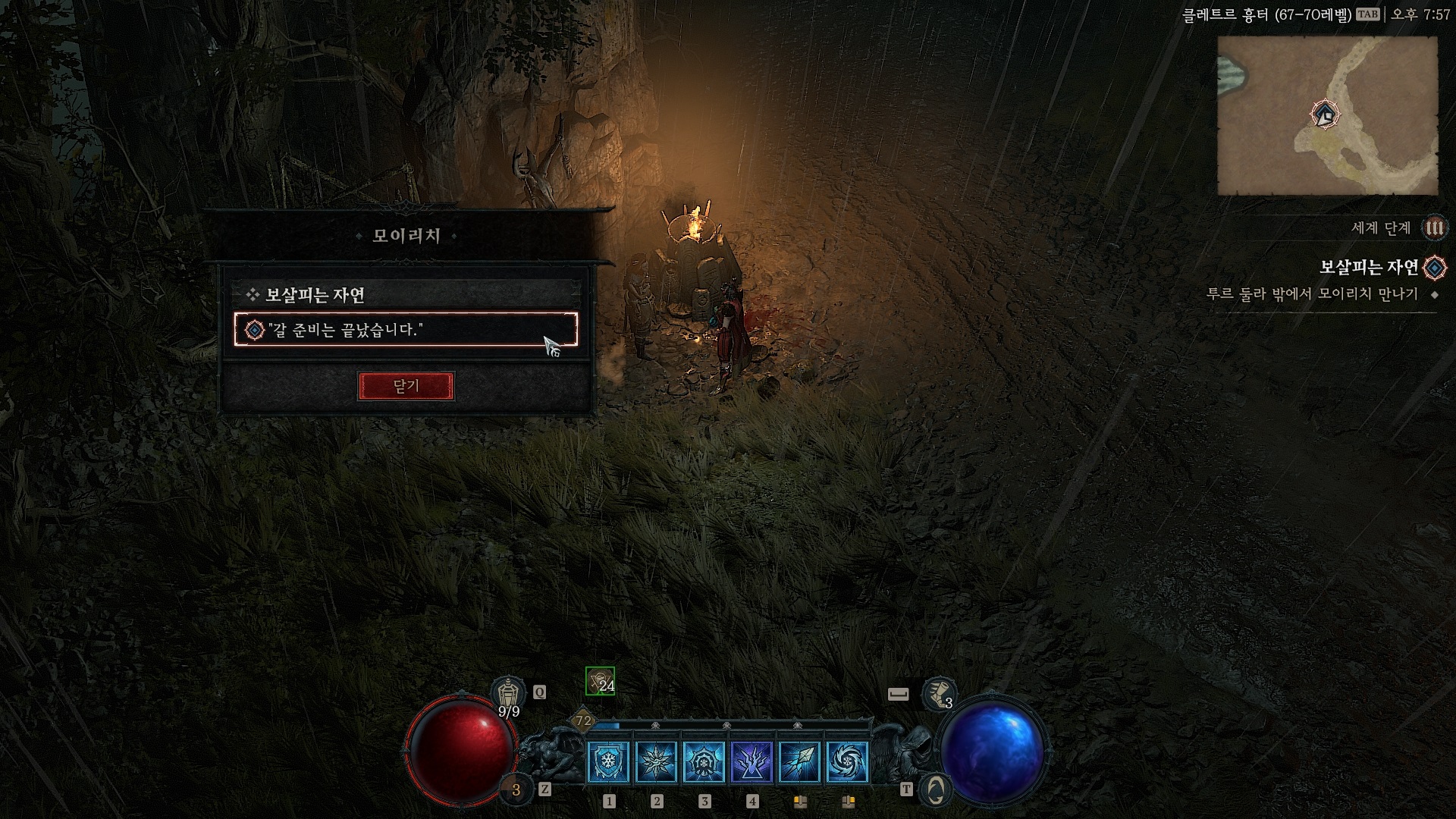 투르 둘란 서쪽, 모이리치와 대화하면 퀘스트가 시작된다.