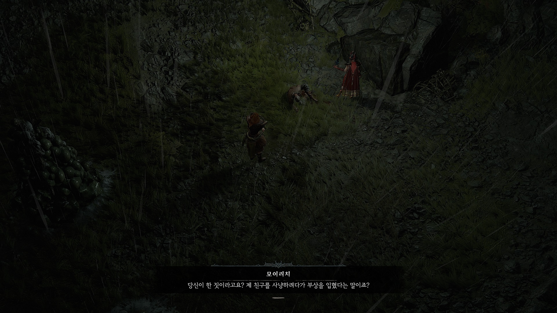 밀렵꾼 처리를 끝내고 모이리치와 대화하면 퀘스트가 완료되고 가죽 보관함을 준다.