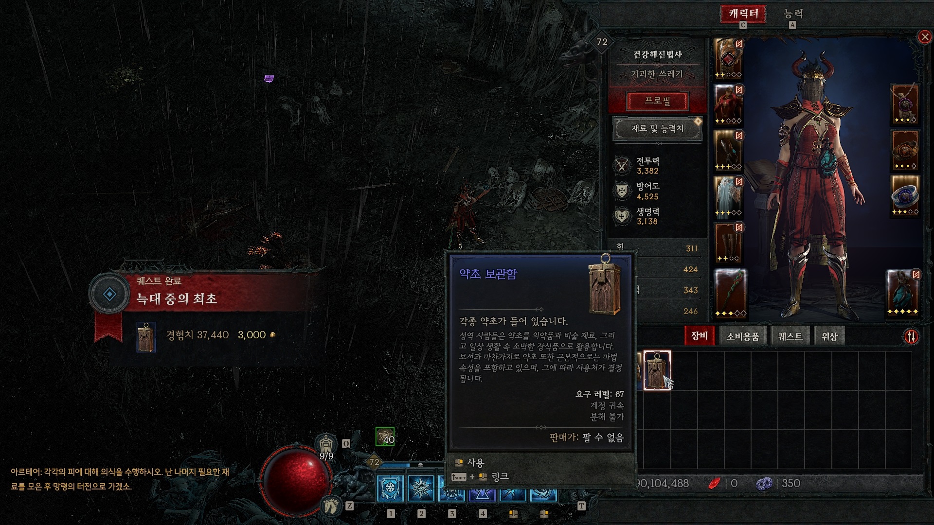 아르테어와 대화하면 퀘스트가 완료되고 보상으로 약초 보관함을 준다. 그리고 덫 퀘스트로 이어진다.