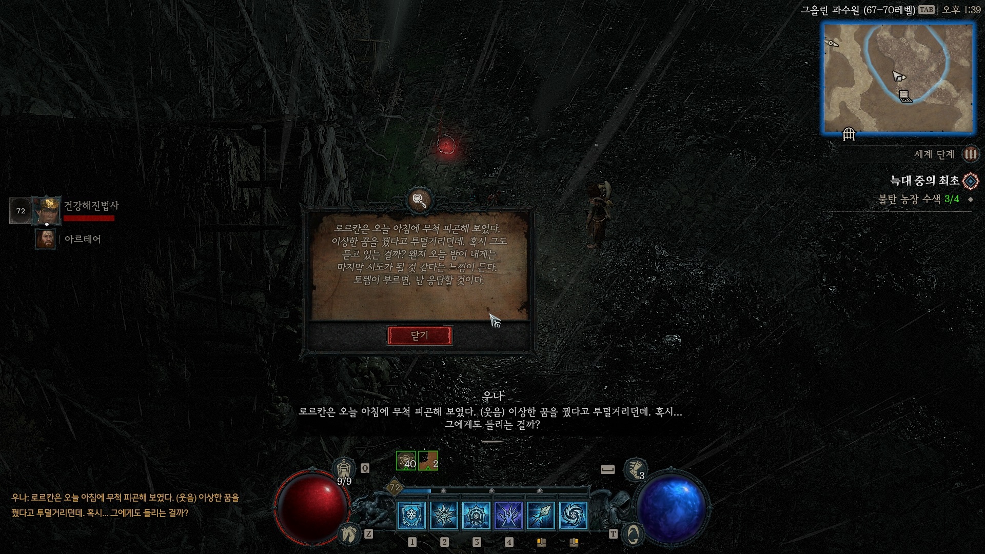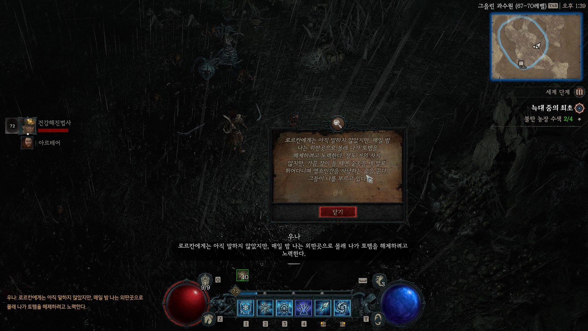 일지를 다 읽고 난 후에 이 일의 배후에 우나가 있다는 것을 알게 된다. 그리고 이어지는 늑대인간들의 공격.. 마지막에 로르칸을 처치하면 된다.