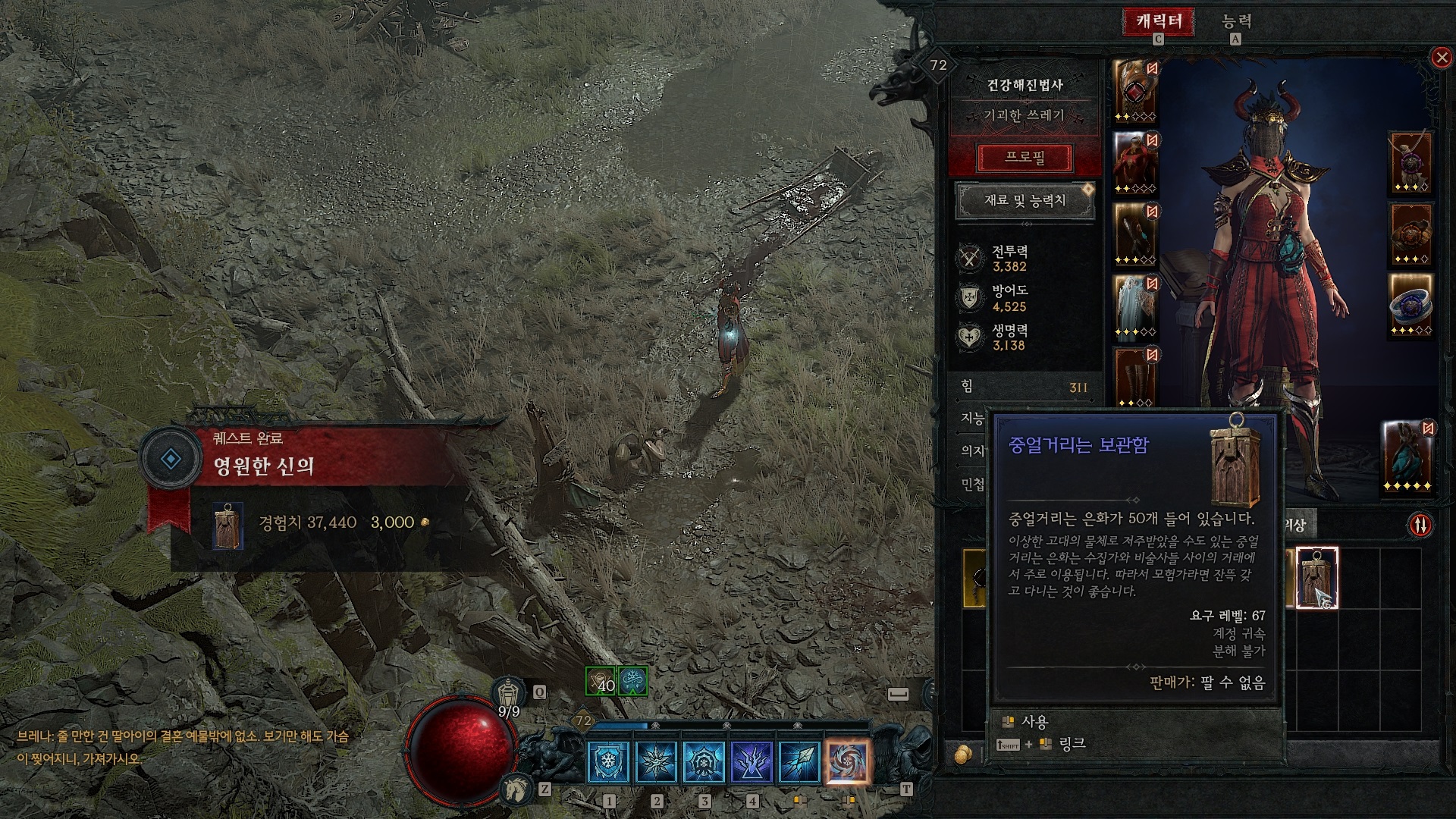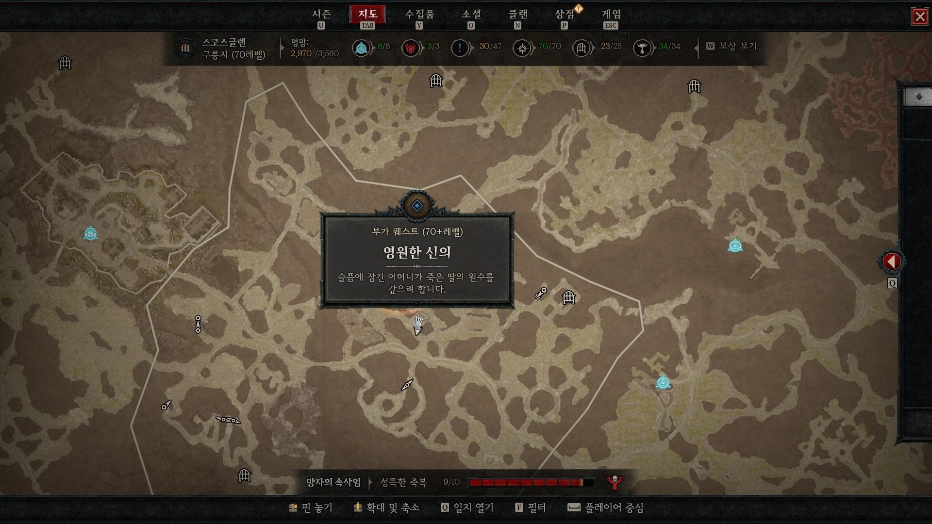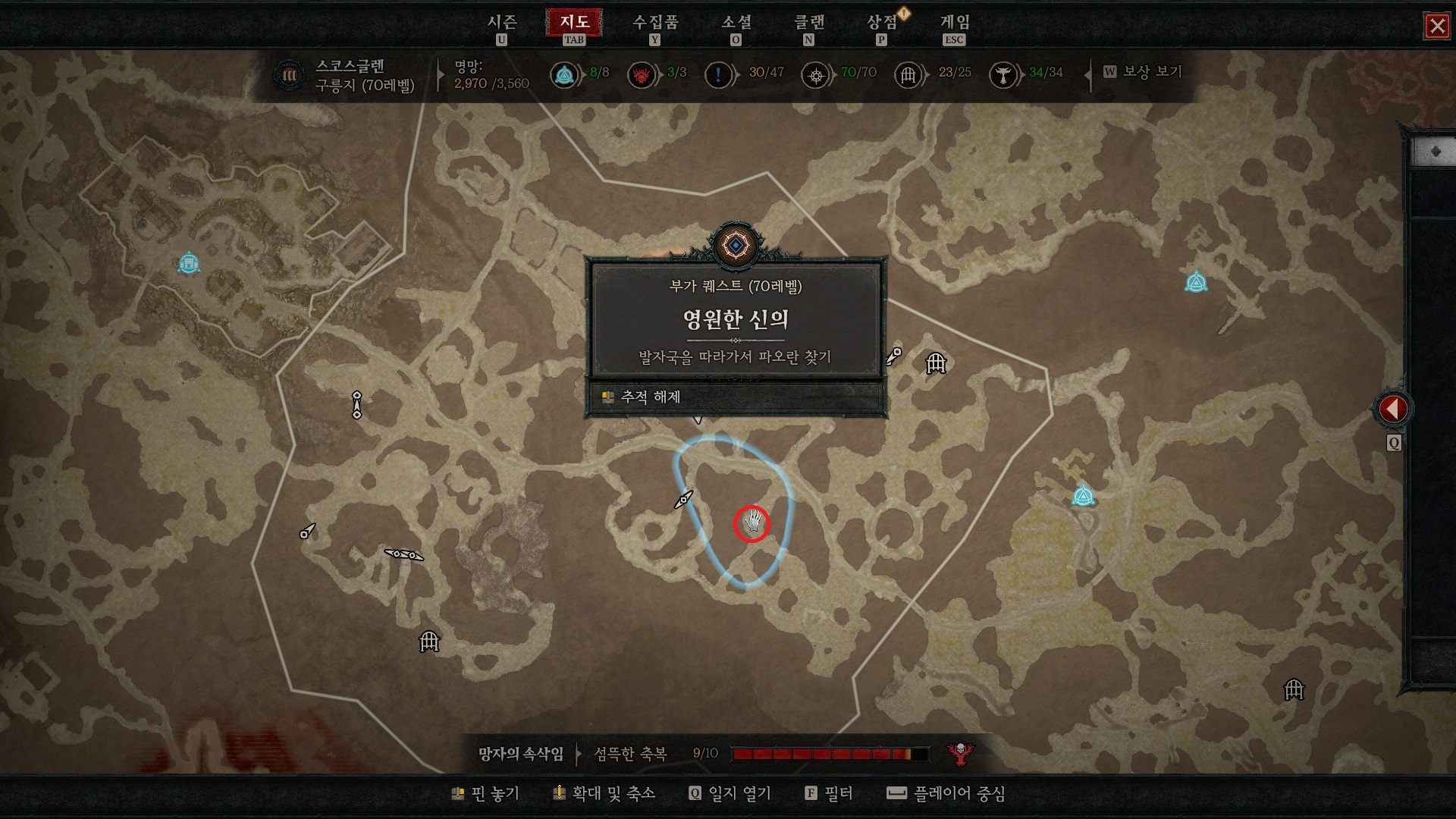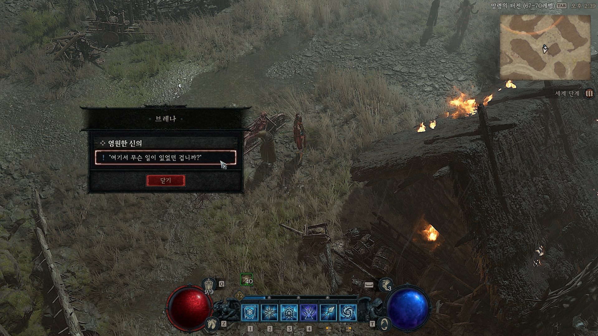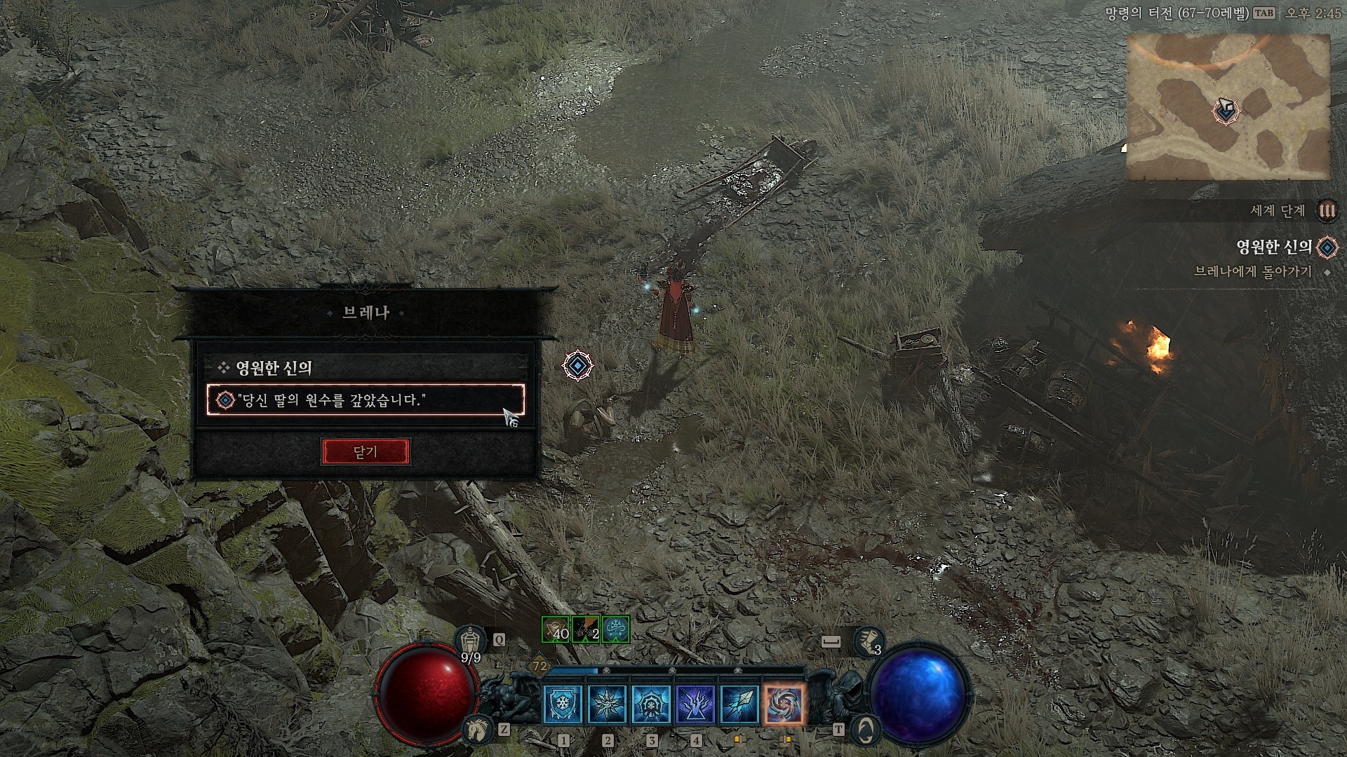 망령의 터전으로 돌아가면 딸의 무덤 앞에 브레나가 있다. 대화하면 퀘스트가 완료되고 중얼거리는 보관함을 보상으로 준다.