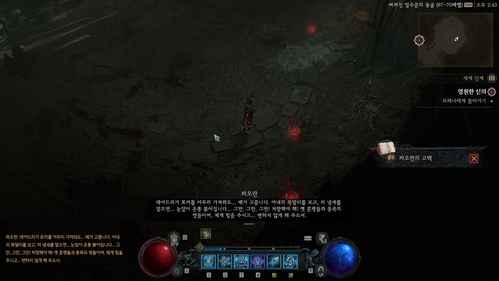 파오란을 처치하면 파오란의 고백이란 템이 나온다. 읽어보면... 뭔가에 미쳐가고 있는 모양이다. 혹시 앞서 한 퀘스트, 우나, 드루이드 토템 때문인가?
