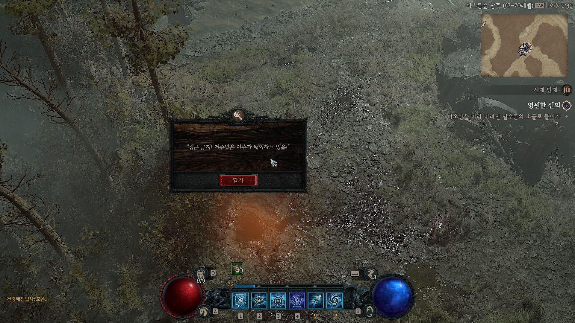 도착하면 경고 표지가 있고 클릭하게 되면 '버려진 밀수꾼을 소굴'이 나타난다. 들어가자.