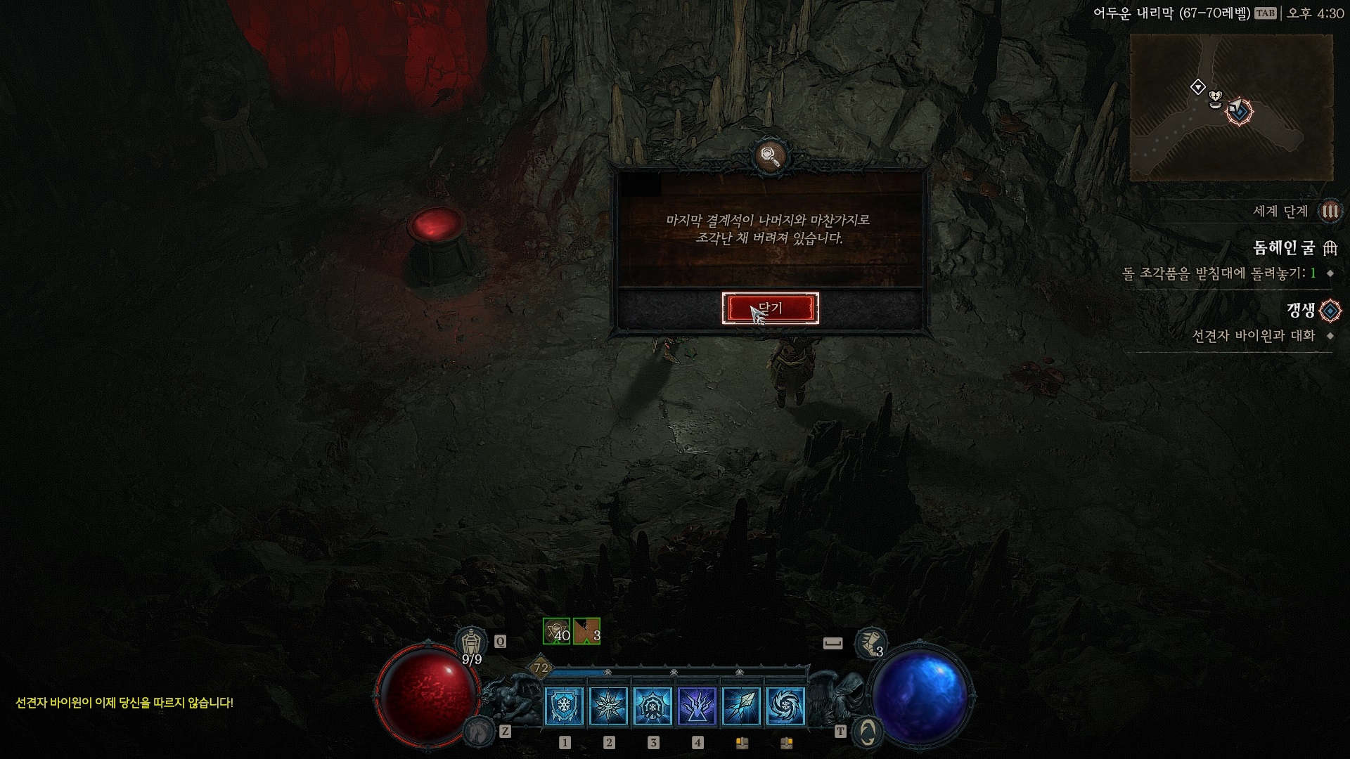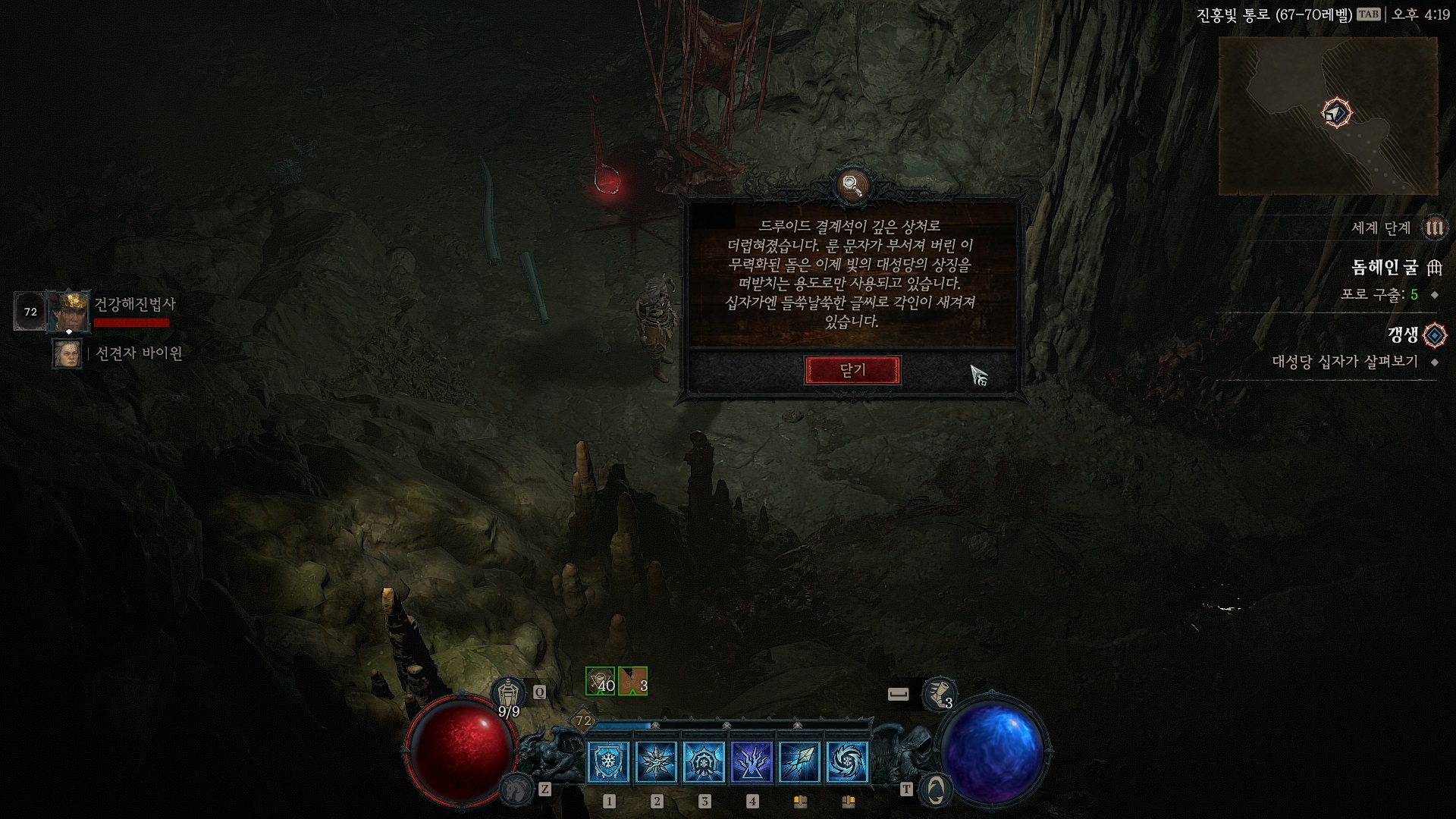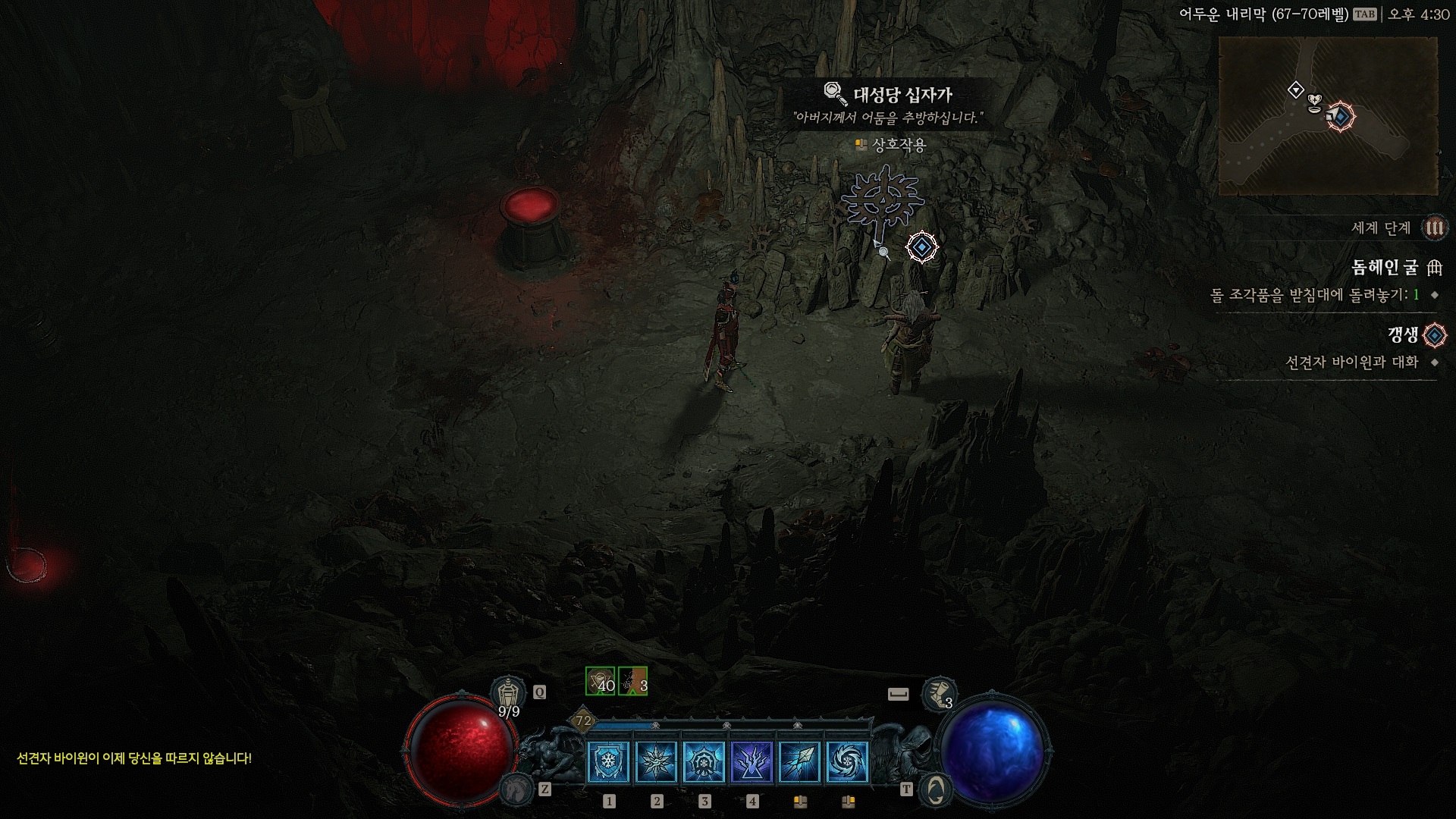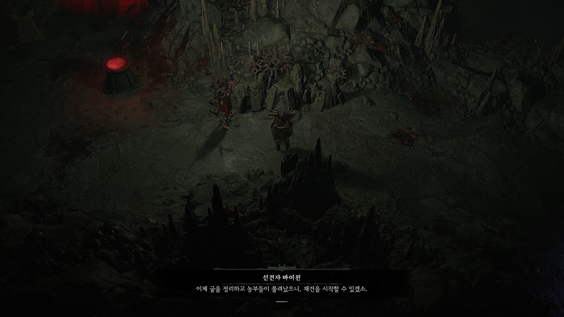 둠헤인 굴로 들어가면 드루이드 결계석은 파괴되고 대신 대성당 십자가가 놓여있다. 이러니 악마들이 미쳐 날뛰고 있지...