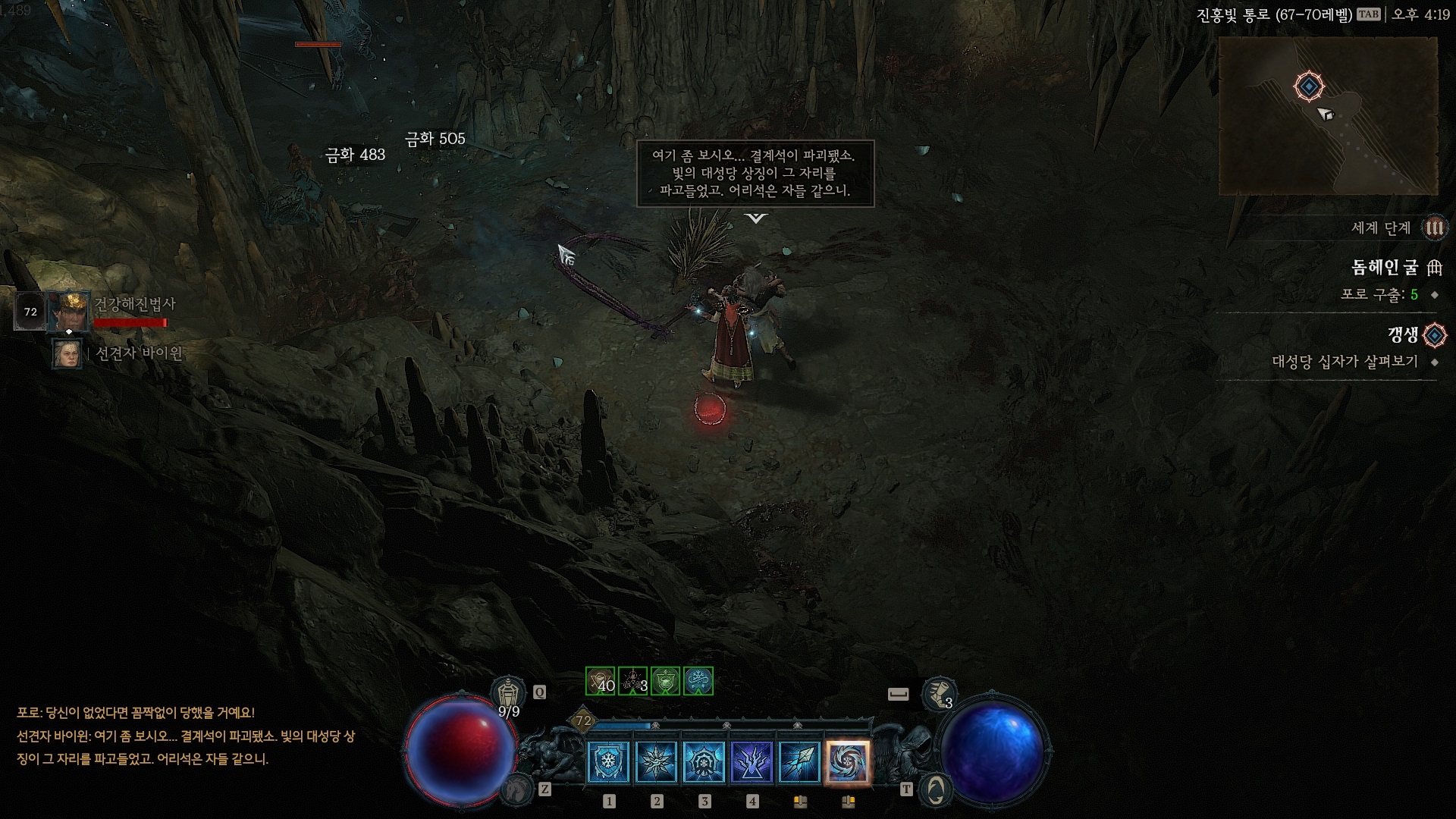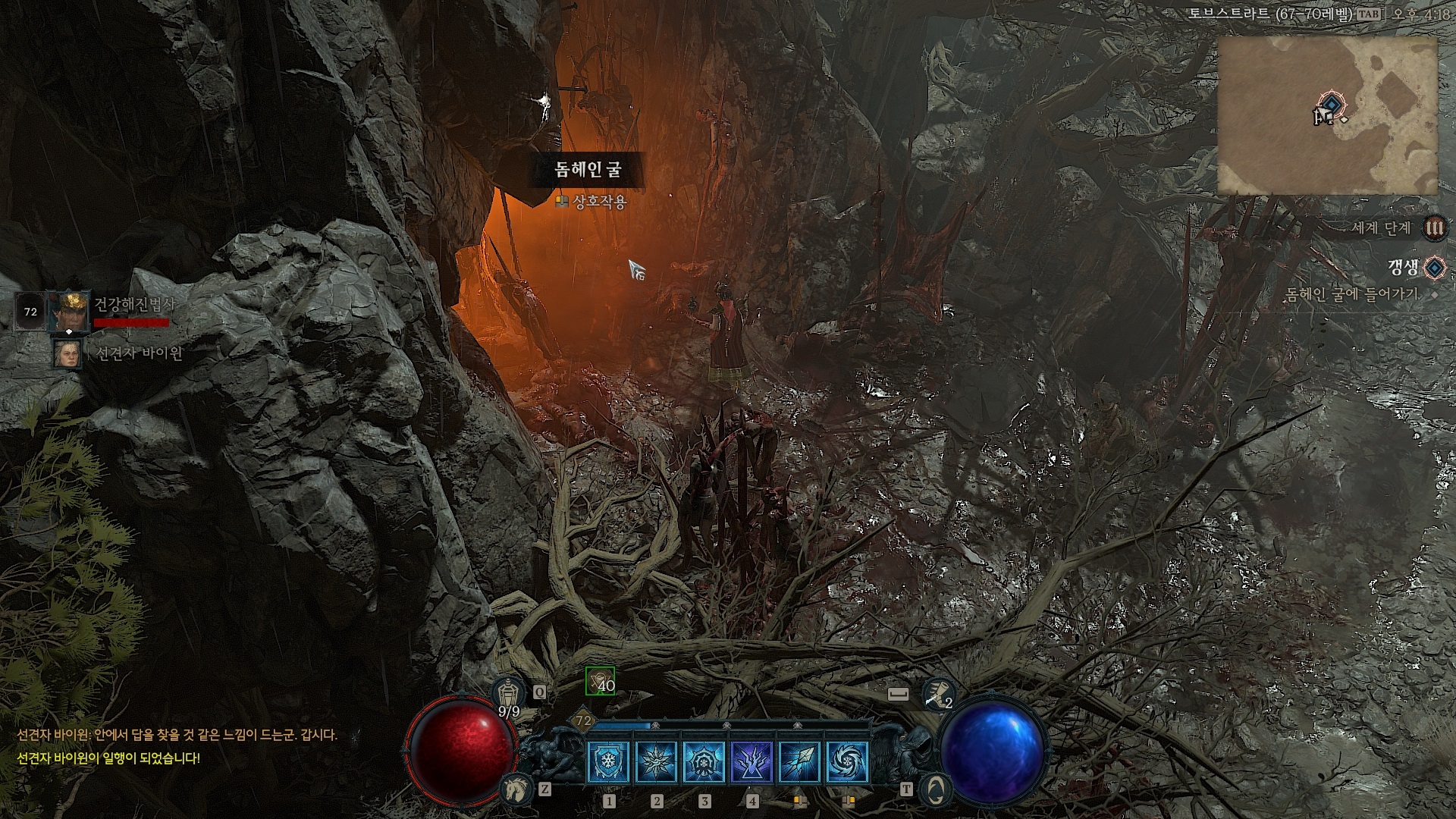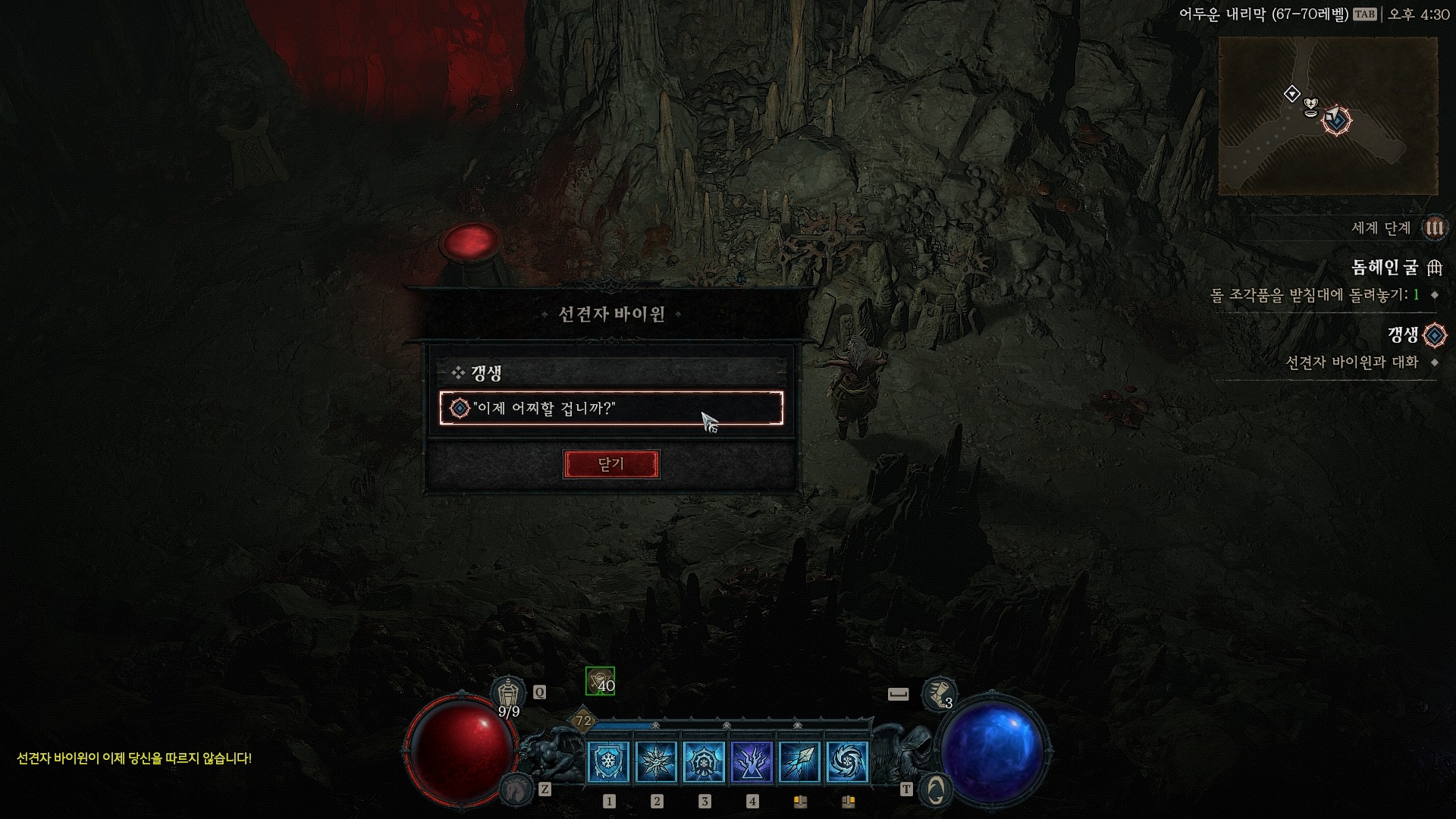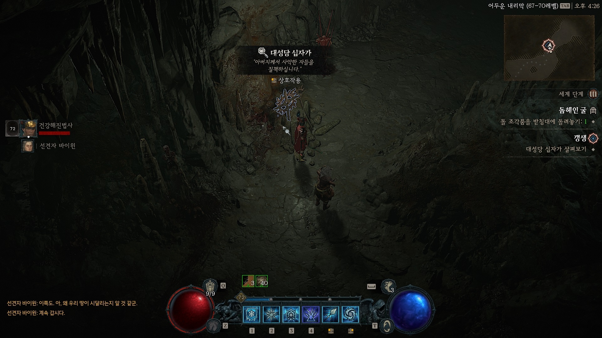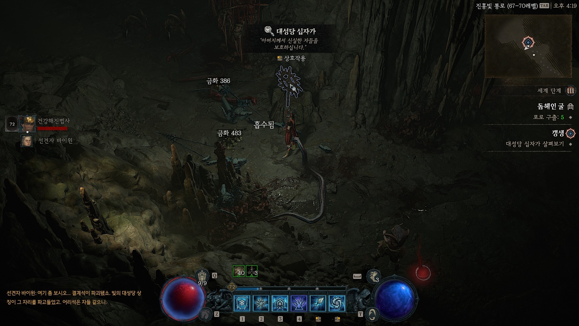 둠헤인 굴로 들어가면 드루이드 결계석은 파괴되고 대신 대성당 십자가가 놓여있다. 이러니 악마들이 미쳐 날뛰고 있지...