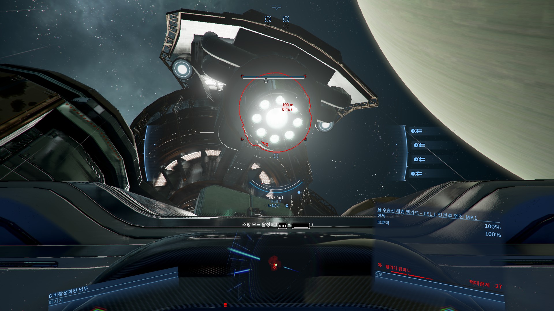 점프 게이트 앞에서는 경찰들이 들이 닥칠 수 있으니, 이렇게 엔진과 가깥은 곳에 붙어서 함께 이동하다가 적당히 거리가 떨어져, 좀 한적한 곳에서 엔진을 파괴하면서 나포 작업에 들어가면 된다.