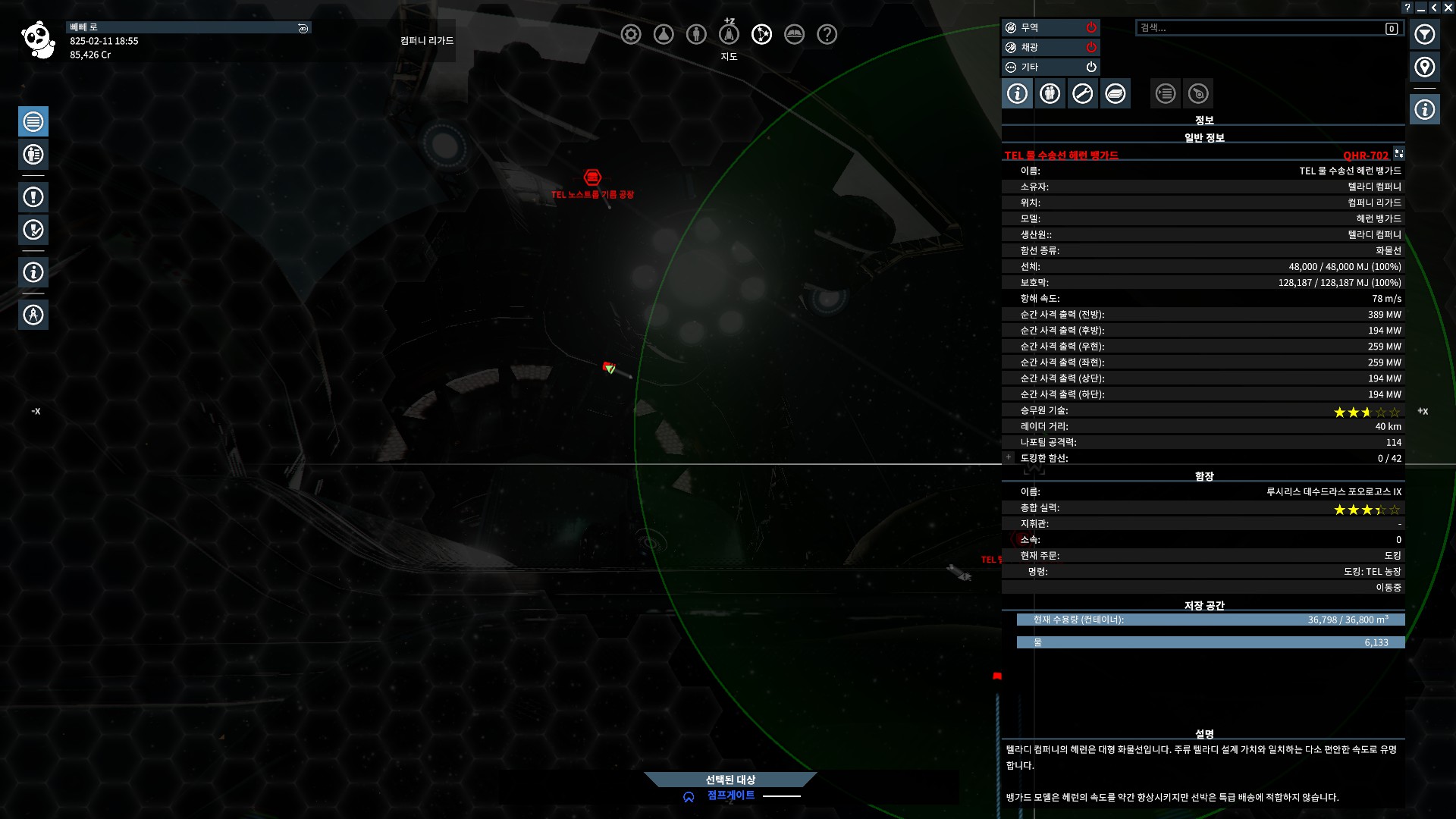 컴퍼니 리가드에서 놀고 있는데 물 수송선이 오길레 스캔을 해보니 물을 잔뜩 가지고 있다.