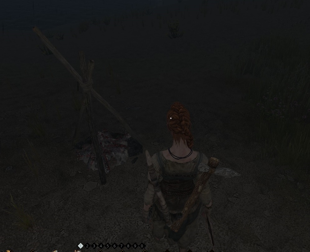 야영지에 지을 수 있는 것은 총 3가지로 나무껍질 상자, 모닥불, 침낭이다. 침낭은 귀환 기도시에 돌아오는 곳이다. 귀환 기도는 기술의 Minor Skills '신앙'에 있다.