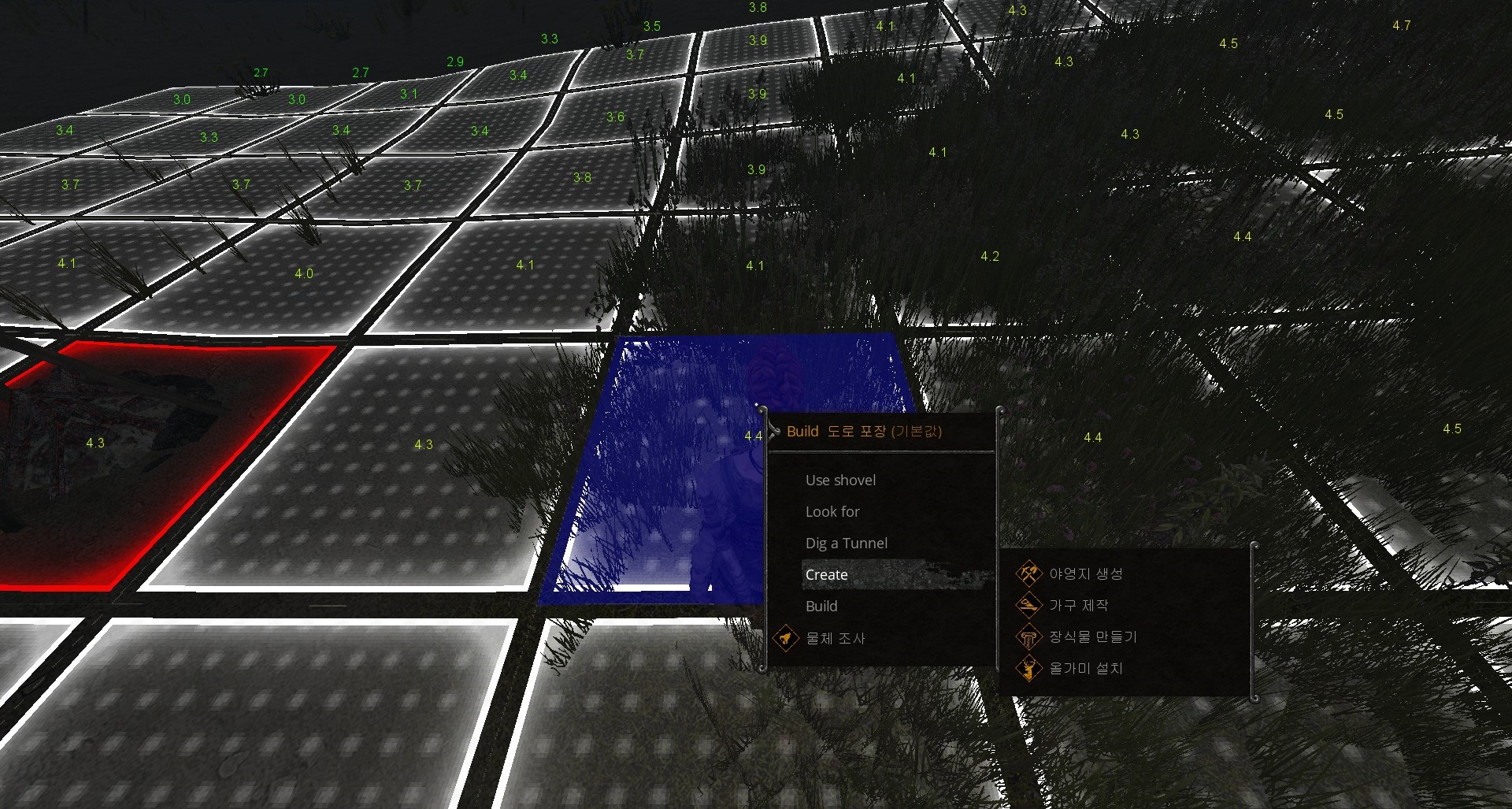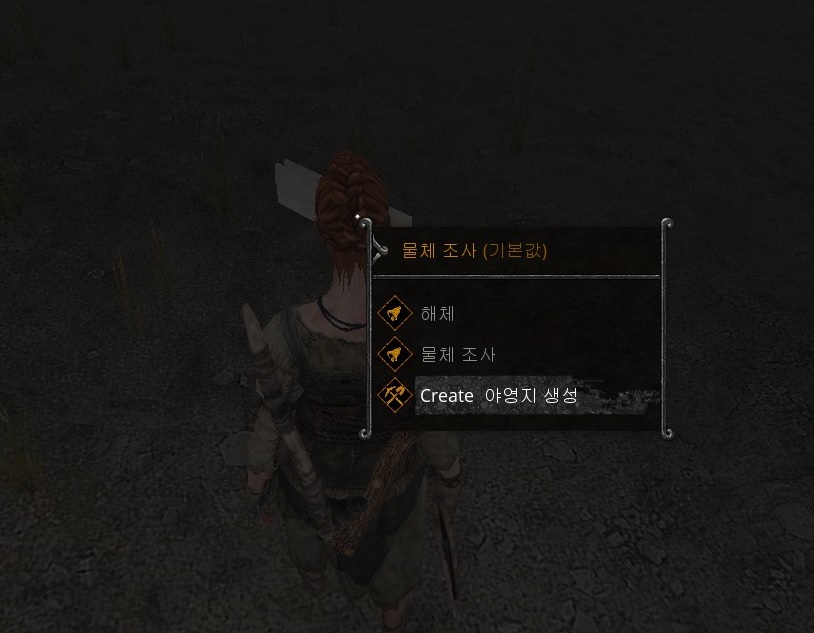 우선 모닥불부터 먼저 건설 할거다. 모닥불을 건설할 위치에 마우스 우클릭, Create -> 야영지 생성을 선택하자.