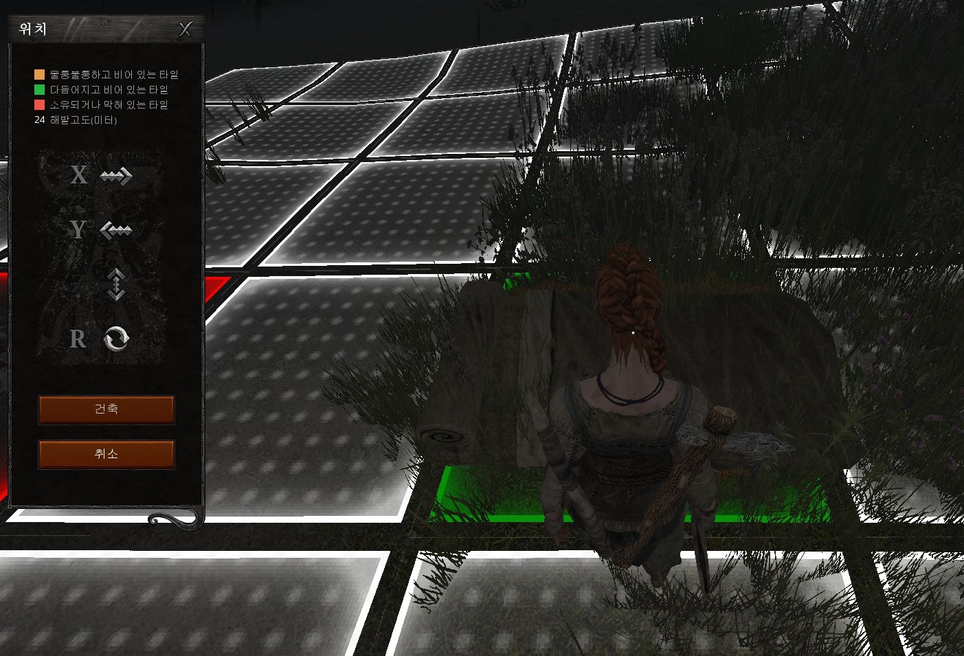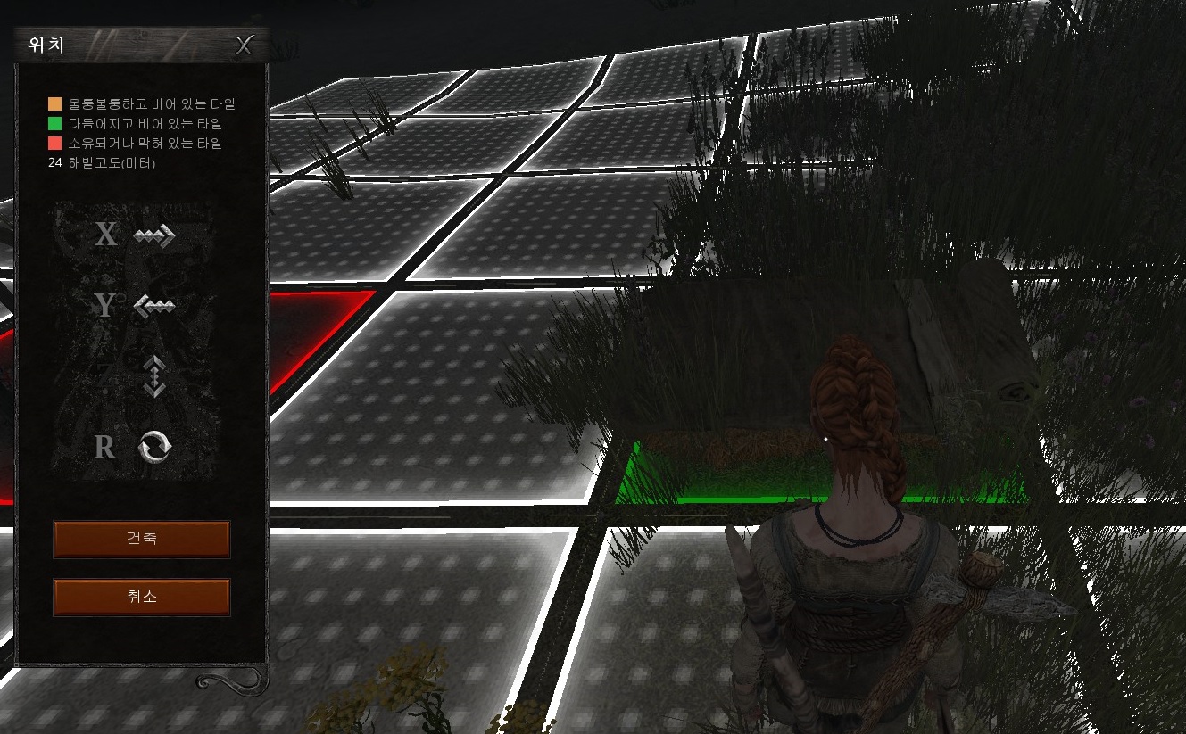 자, 이제 왼쪽 위치란걸 알아보자. 이건 해당 건축물의 배치를 변경하는 것으로 X,Y는 좌우 위치, Z는 높이, R은 회전이다. 방법은 변경하고자 하는 아이콘을 마우스로 꾹 누른체 좌우로 움직이면 변경된다. 특이하게 Z, 즉 높이는 위아래로 움직여야 된다.
