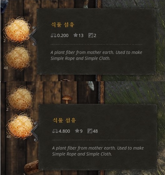 게임을 하다보면 동일한 물건을 줏어도 계속 아이템이 나뉘어지는데 그 이유는 바로 품질 때문이다. 별표 모양이 품질의 수치로 품질이 각각 13, 9 이다보니 이런 현상이 나타나는 것. 서로 다른 품질의 아이템을 한데 섞어 버리면 품질이 낮아지게 된다. 1품질과 100품질을 섞으면 50이 되어버리는 것.. 그러니 품질이 높은 것은 합치지 말고 따로 모아두도록 하자.