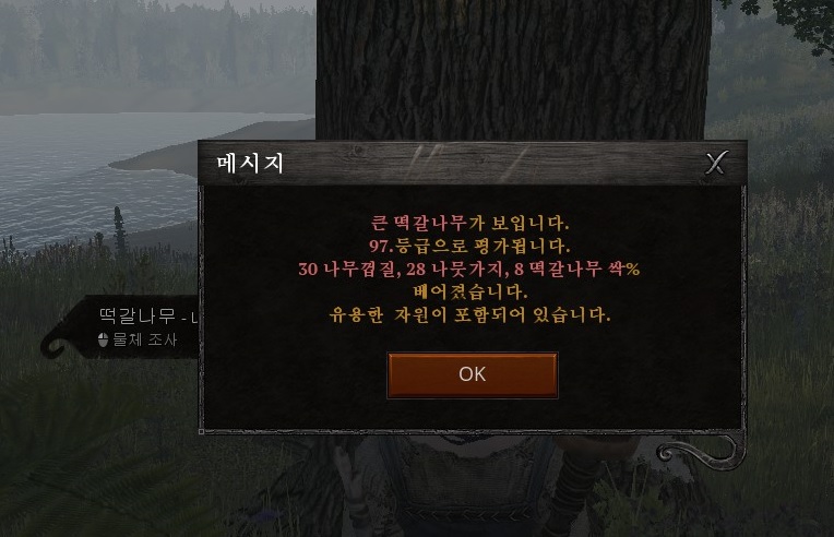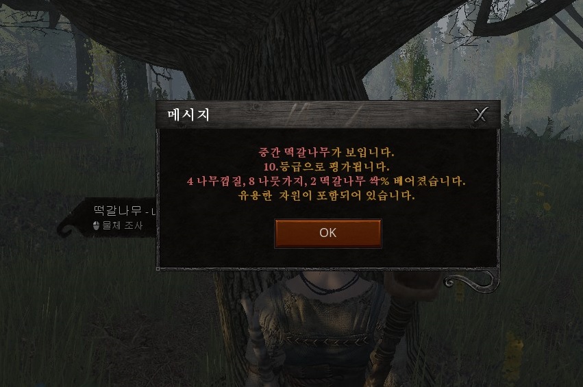 똑같은 떡갈나무이지만 등급, 즉 품질이 높은 쪽이 나무껍질, 나뭇가지, 떡갈나무 싹이 월등히 많다. 게다가 벌목 후에 얻게 되는 판자나 나무 토막, 건축용 통나무도 역시 등급이 높은 쪽에서 더 많이 구할 수 있다. (물론 벌목 이후 얻는 아이템의 품질은 스킬에 영향을 받는다.)