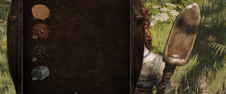 점토, 모래, 비옥한 토양, 숲 토양은 삽으로 땅을 다듬으면서 얻게 되는 재료들이다.