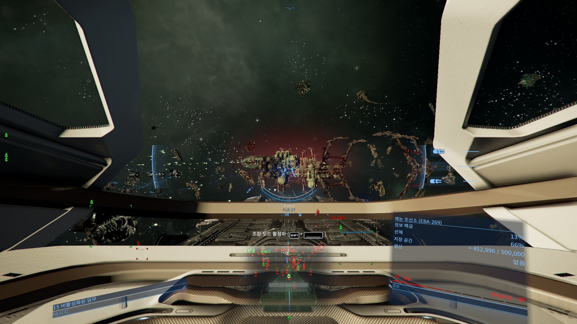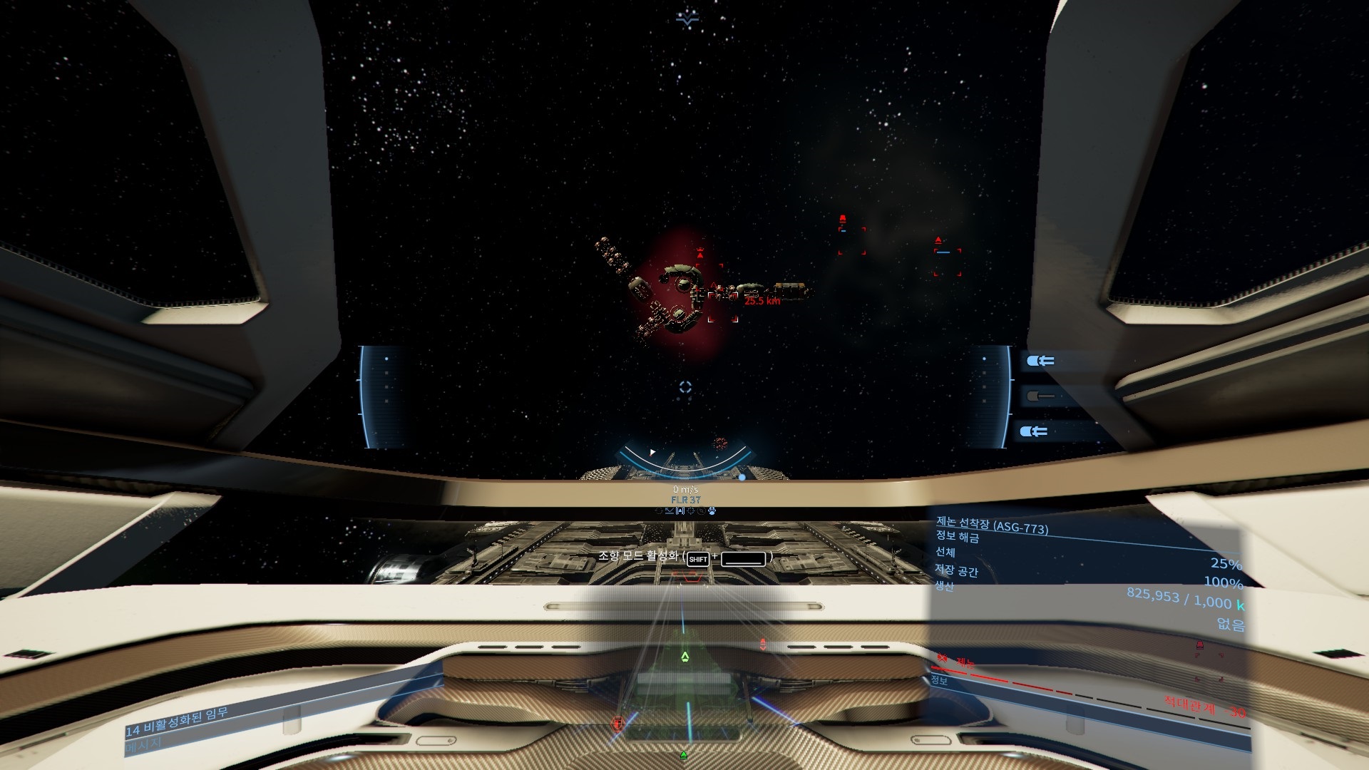 한대 손실로 방어 스테이션을 부수고 난 뒤에 곧바로 선착장을 향해 진격. 선착장에는 방어 스테이션이 꽤나 많다. 건물 연결 사이사이에 있다. 그래서 이렇게 밑으로 내려가서 위로 보는 시점을 한 상태에서 주포로 방어 스테이션을 파괴하는게 피해를 최소화 하는 방법이라고 할 수 있다.