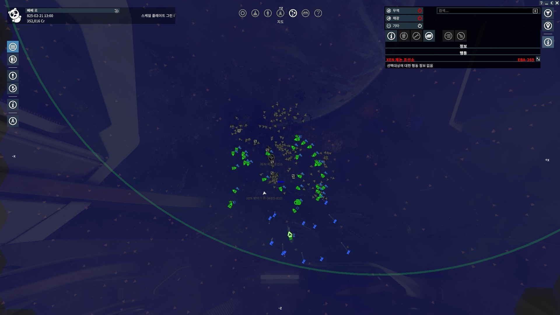 스케일 플레이트 그린 I, 여기를 점령하게 되면 섹터 전체를 점령하게 된다. 우선 주변을 정찰을 하자. 돌아다니면서 광역 스캔을 해보니 부셔야 될 스테이션은 단 4개...