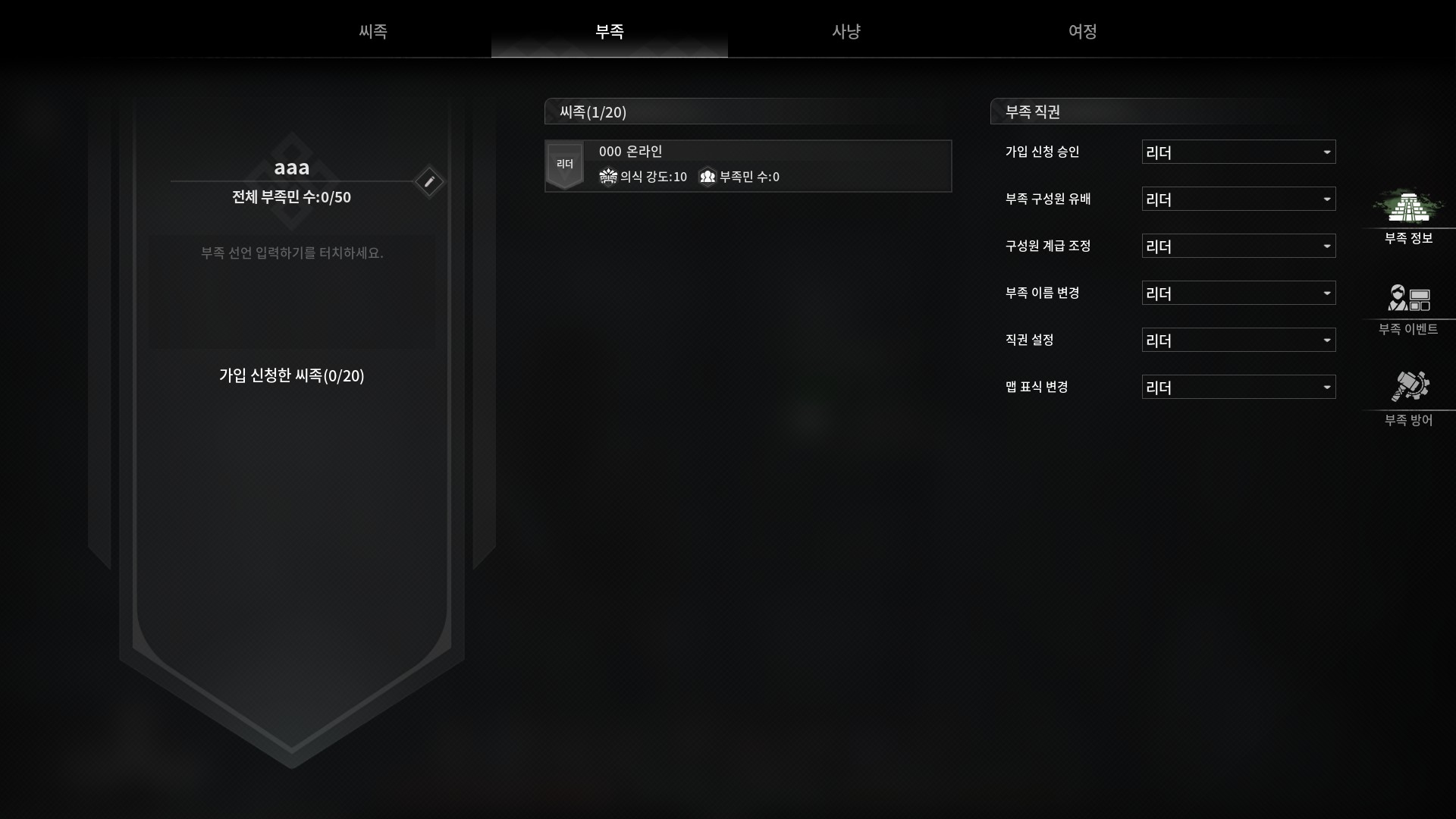 부족을 하나 만들어 봤는데, 가입 신청 승인, 계급 등등 뭔가 권한을 주는게 있는걸 보니 아마도 다른 게임의 길드, 클랜 같은 개념인 것 같다. 그럼 NPC를 통한 자동화는 아닌건가? 조금 헷갈리는 부분이다.