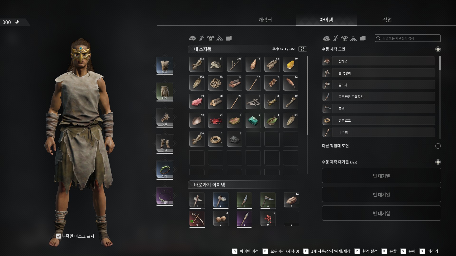 제작 할때가 문제가 있다. 제작시 대기열에 들어가면 바로 만들기 시작하는데 한개 만들때는 상관없지만 1개 이상 지정해야 만들때 숫자를 지정하기 전에 완성 되서 계속 1개씩 대기열에 넣어서 만들어야 되는 불편함이 있다.
