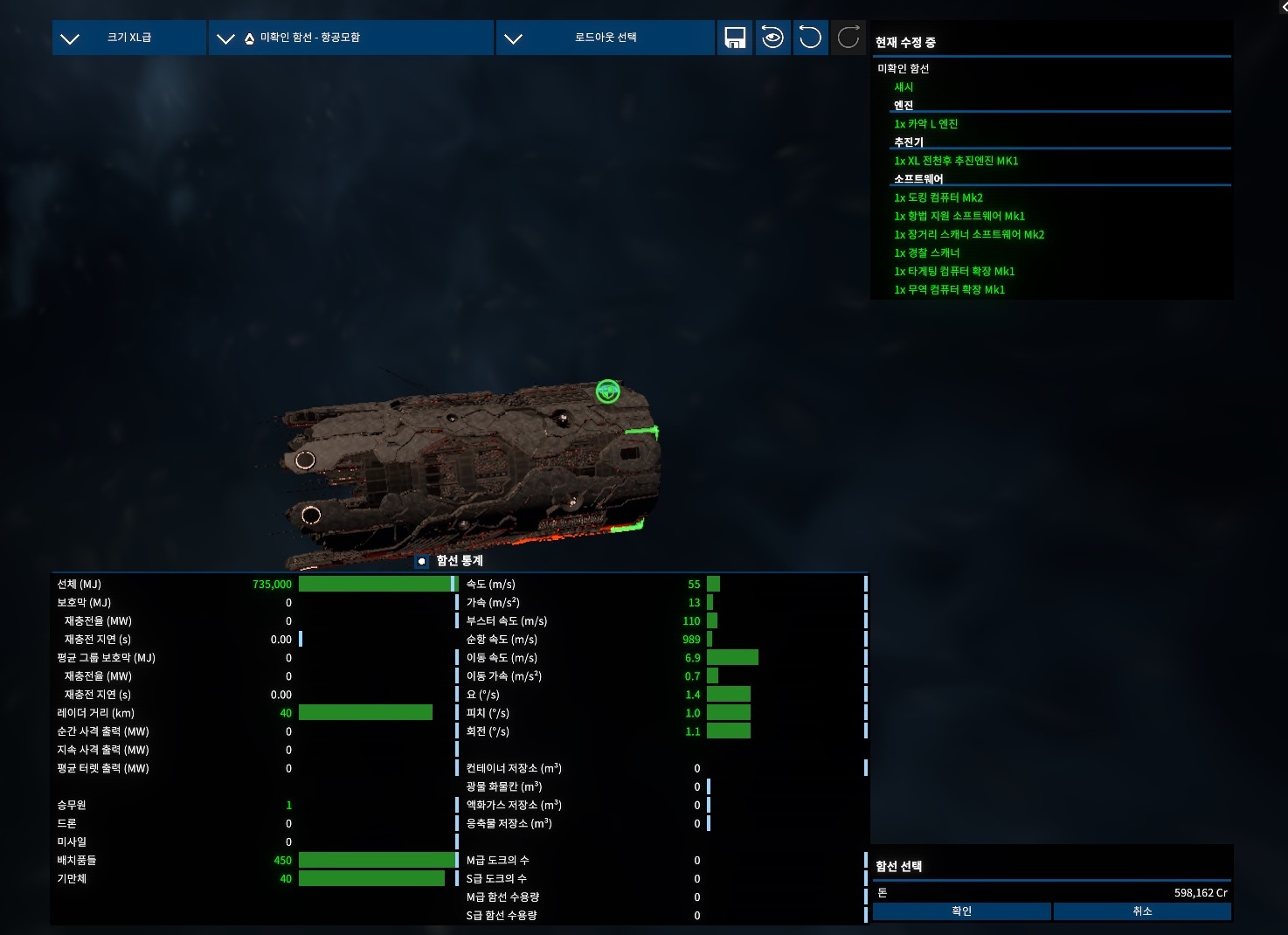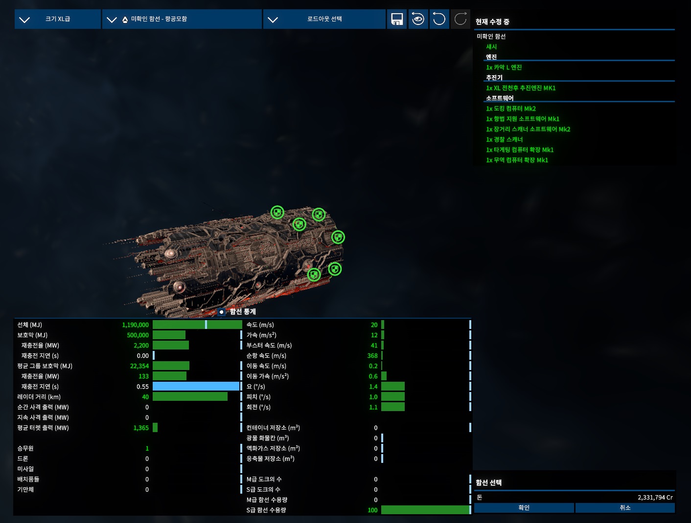 두번째는.. 어.. 달 수 있는게 엔진과 추진체 뿐이다. 메인 보호막도 못 단다. 다만 위에 녀석보단 순항소도는 압도적이다.