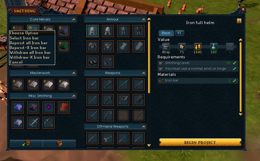 만약 개별적으로 아이템을 빼고 싶다면 용광로에서는 빼고 싶은 ore 우클릭해서 Withdraw를 선택하면 된다. all은 모두, -x는 왼쪽 하단에 숫자 입력칸이 나오고 그 숫자만큼 뺀다. 가방을 초과하는 양일 경우 자동으로 노트가 되지만 그렇지 않다면 개별적으로 나온다. 용광로에서는 광석만 빼낼 수 있다.