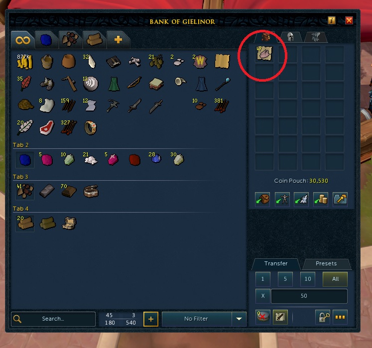 은행에서 아이템을 꺼내면 이렇게 47개가 노트로 한꺼번에 나와있다. 경매장에 한번에 올릴때 주로 사용하면 된다. 이 상태로 거래가 될려나..