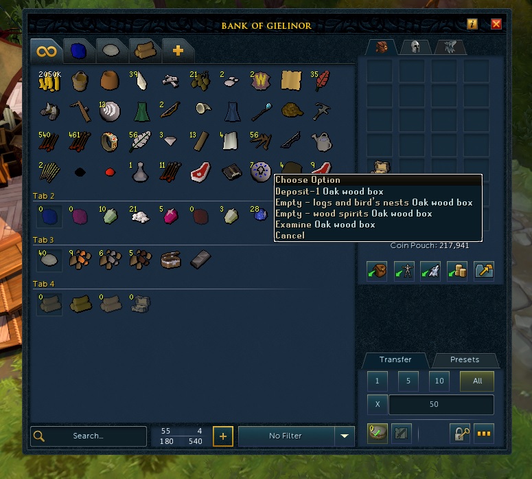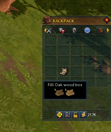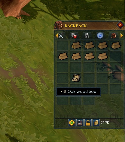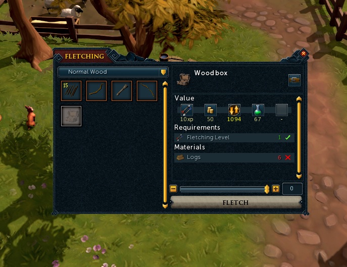-Wood box : Fletching 1, Logs 6개, Logs+Achey tree logs 보관, 70개 보관 (최대 170개)