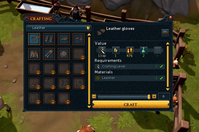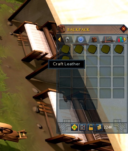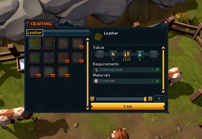 그러면 이렇게 제작 창이 뜬다. Leather를 선택해서 가죽을 만들자.