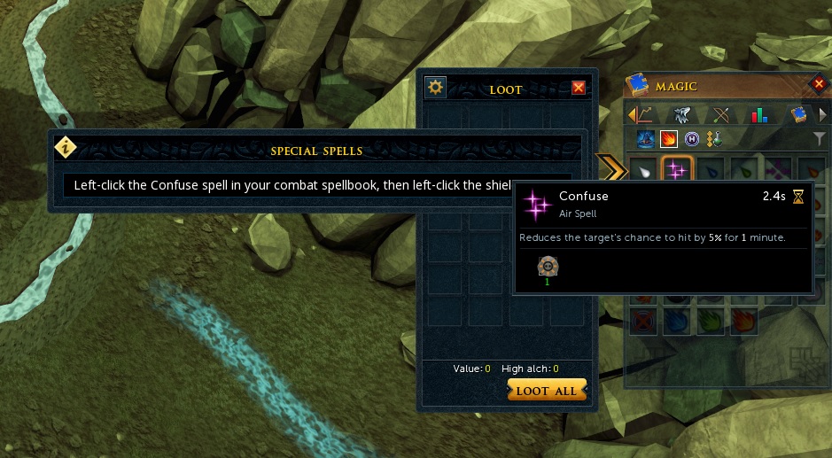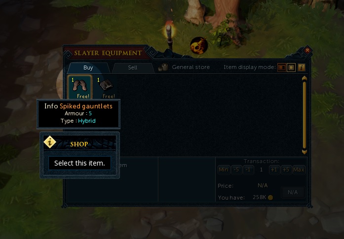 Turael과 대화를 하면 마법에 대한 장황한 설명을 한다. 그리고 두번째 대화를 하면 spiked gauntlet를 착용하라고 하는데 거래를 하면 무료로 한개 준다.
