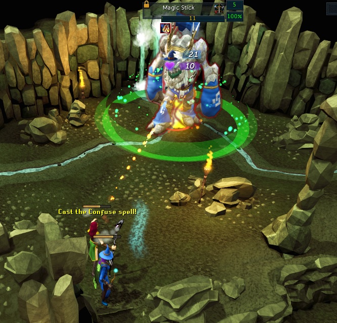 이 녀석 역시 아무리 때려도 안 죽는다. 이때 공격을 잠시 멈춘 상태에서 Confuse 스킬 클릭하고 magic stick을 클릭하면 confuse 스킬을 사용하고 처치가 가능해진다.