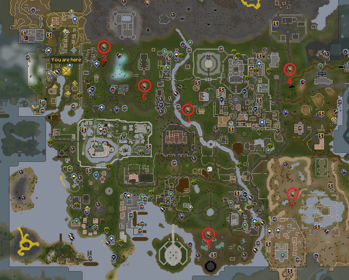 무료 계정으로 만들 수 있는 룬만 표시했다. 나머지 룬 제작 위치를 알고 싶다면 룬스케이프 위키의 Altar locations 을 참조하면 된다.