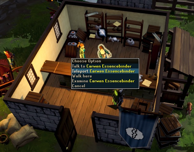 상점에 있는 Carwen Essencebinder 우클릭해서 Teleport Carwen Essencebinder 를 선택하자. 그러면 아래 갈거냐고 묻는 창이 나오는데 'yes' 를 선택한다.