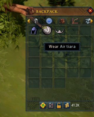 그러면 티아라에 부적을 결합시키게 되면서 부적은 소멸하고 Air tiara가 완성된다. 이제 이걸 착용하면 공기 제단에 바로 진입이 가능하다.