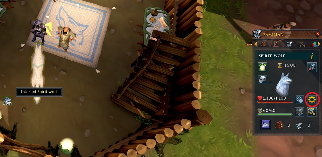 소환수의 행동을 설정하고 싶다면 오른쪽 톱니모양 설정을 누른다.