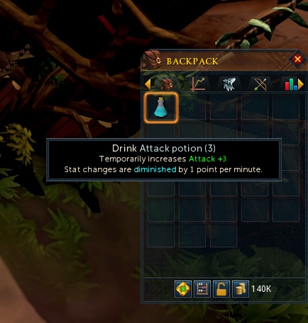 attack+3 포션을 완성했다. 뒤에 괄호로 된 숫자는 마실수는 횟수라고 보면 된다. 3번 마시면 끝난다는거.