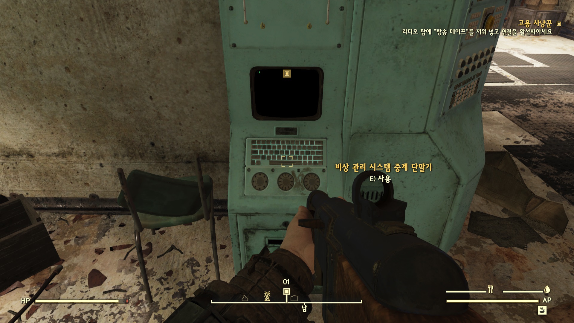 라디오 탑에 가서 '방송 테이프'를 끼워넣고 연결을 활성화 해야 한다.