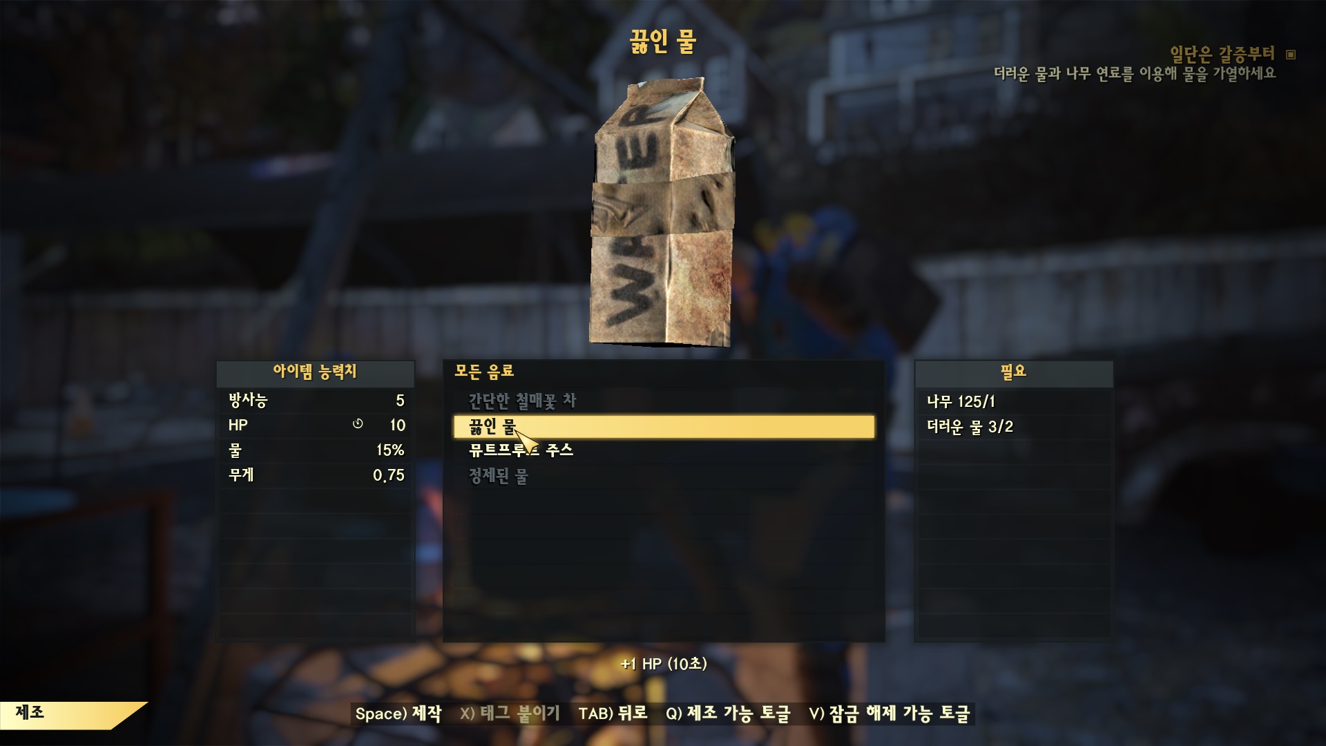 물 펌프에서 모으자. 이거 뭔가 클릭이 잘 안되더라. 겨우겨우 얻었다.