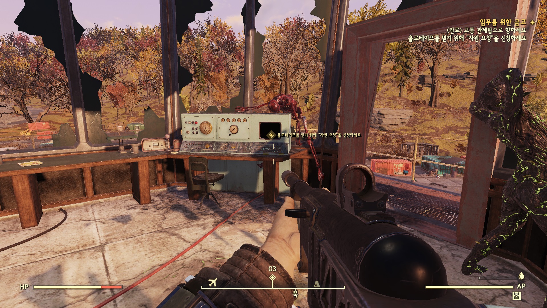 모건 공항 터미널 뒤쪽 텐트가 있는 곳에 보면 Gunsmith라는 녹색 컨테이너가 있다. 거기가면 구호단원 록키가 있다. 열쇠를 줏어 바로 옆에 있는 금고를 열어 '정찰 3: 보호소'를 재생한다.