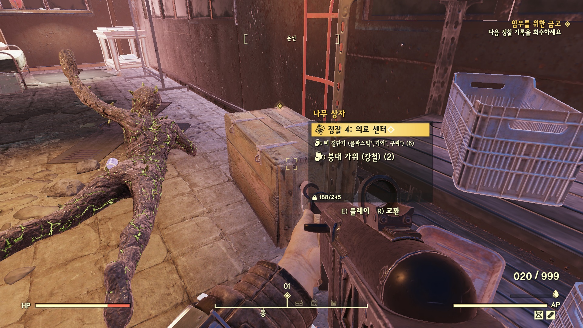안에서 '정찰 4: 의료 센터'를 획득 및 재생한다.