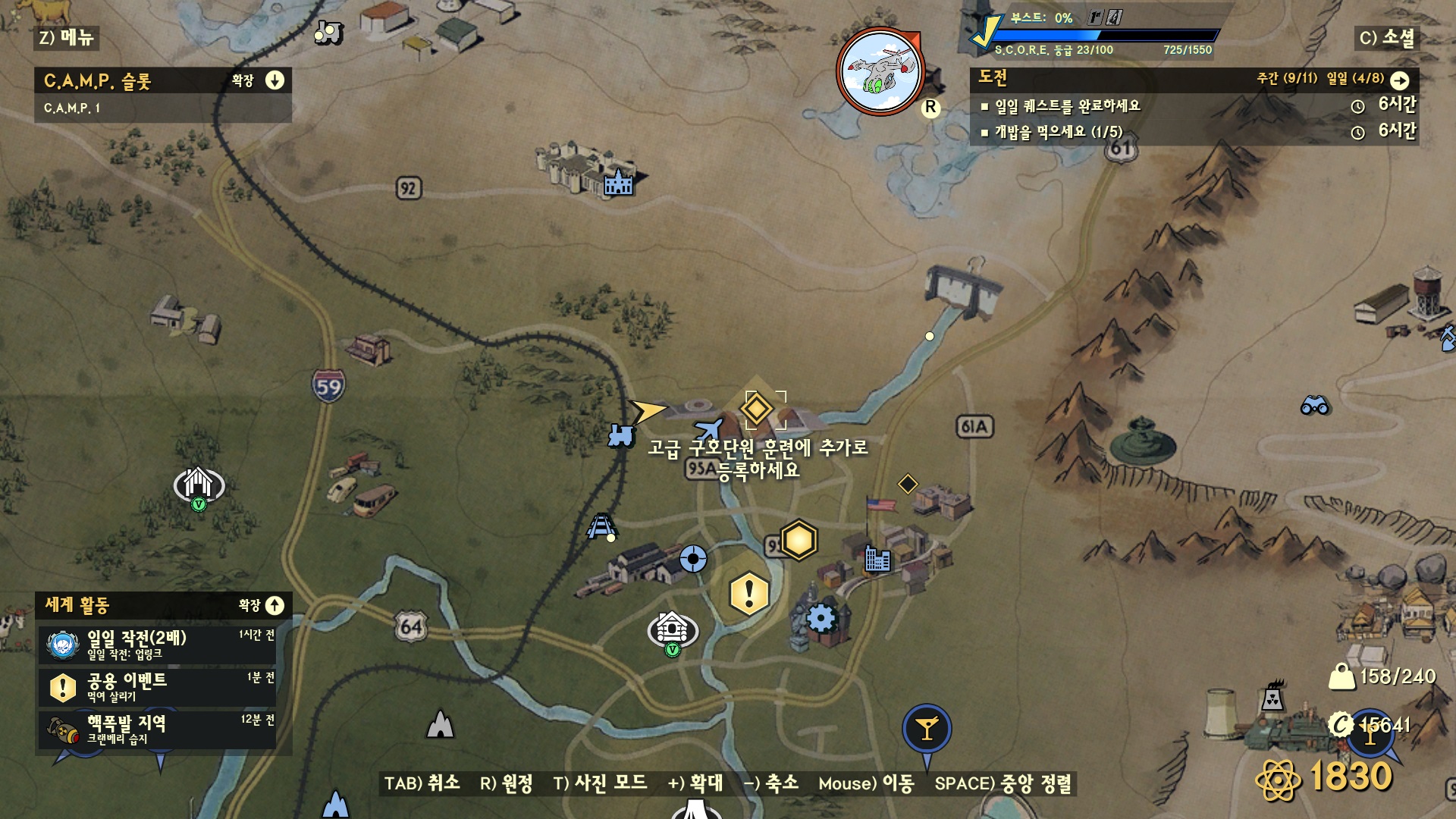 훈련 단말기에 접속, 이용 가능한 훈련 보기 -> 물자 정찰을 선택하자.