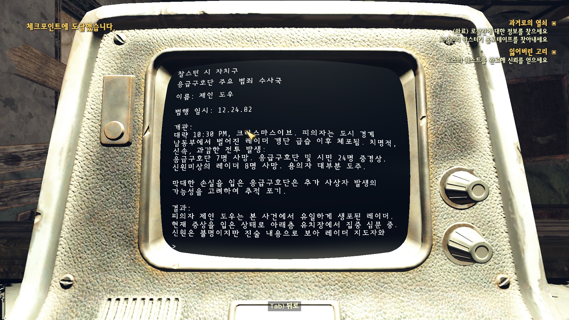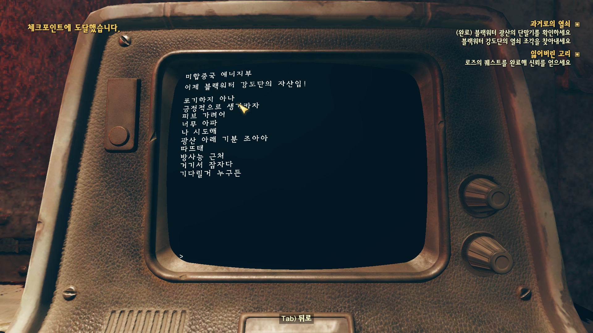 첫번째 키를 찾기 위해 블랙워터 광산으로 가서 단말기를 확인하자.