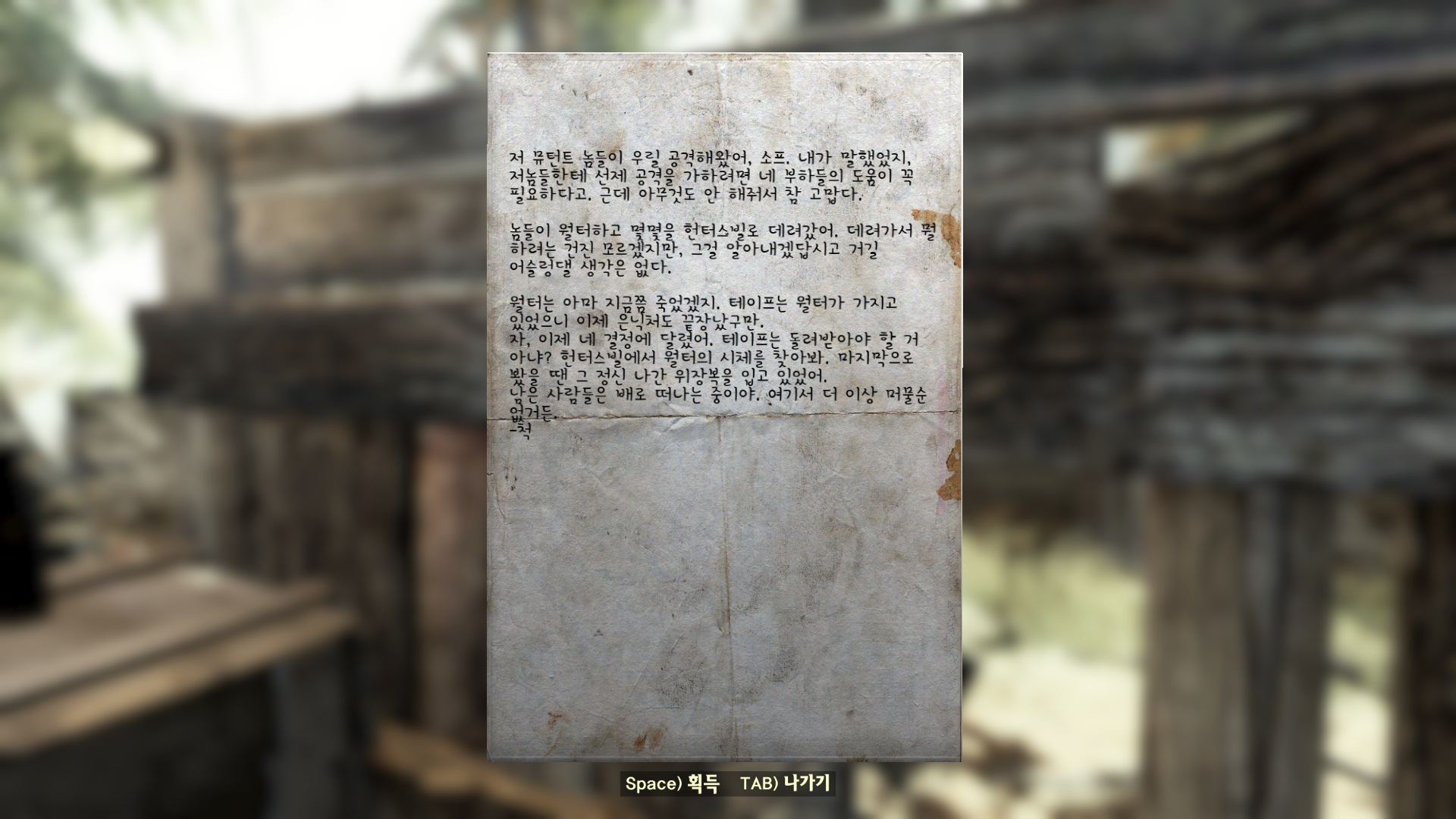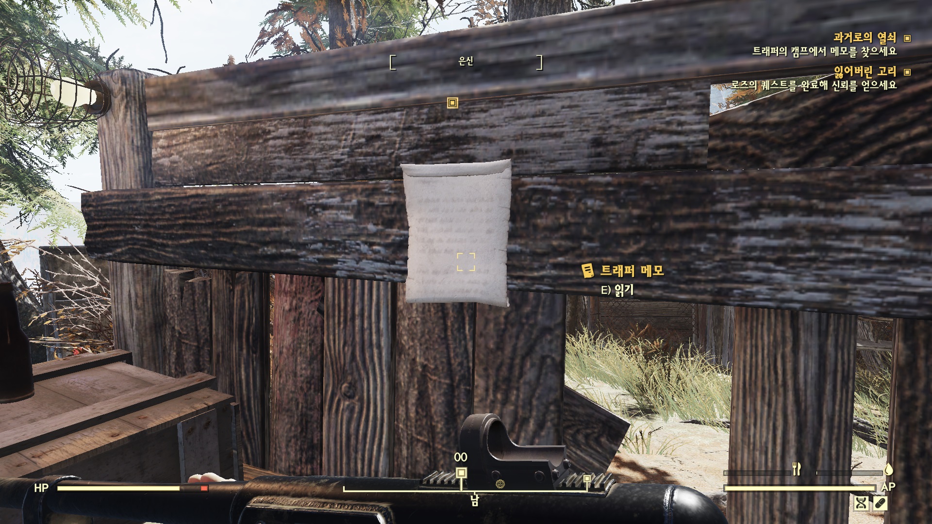두번째 열쇠 조각은 트래퍼의 캠프에서 메모를 찾는 것이다.