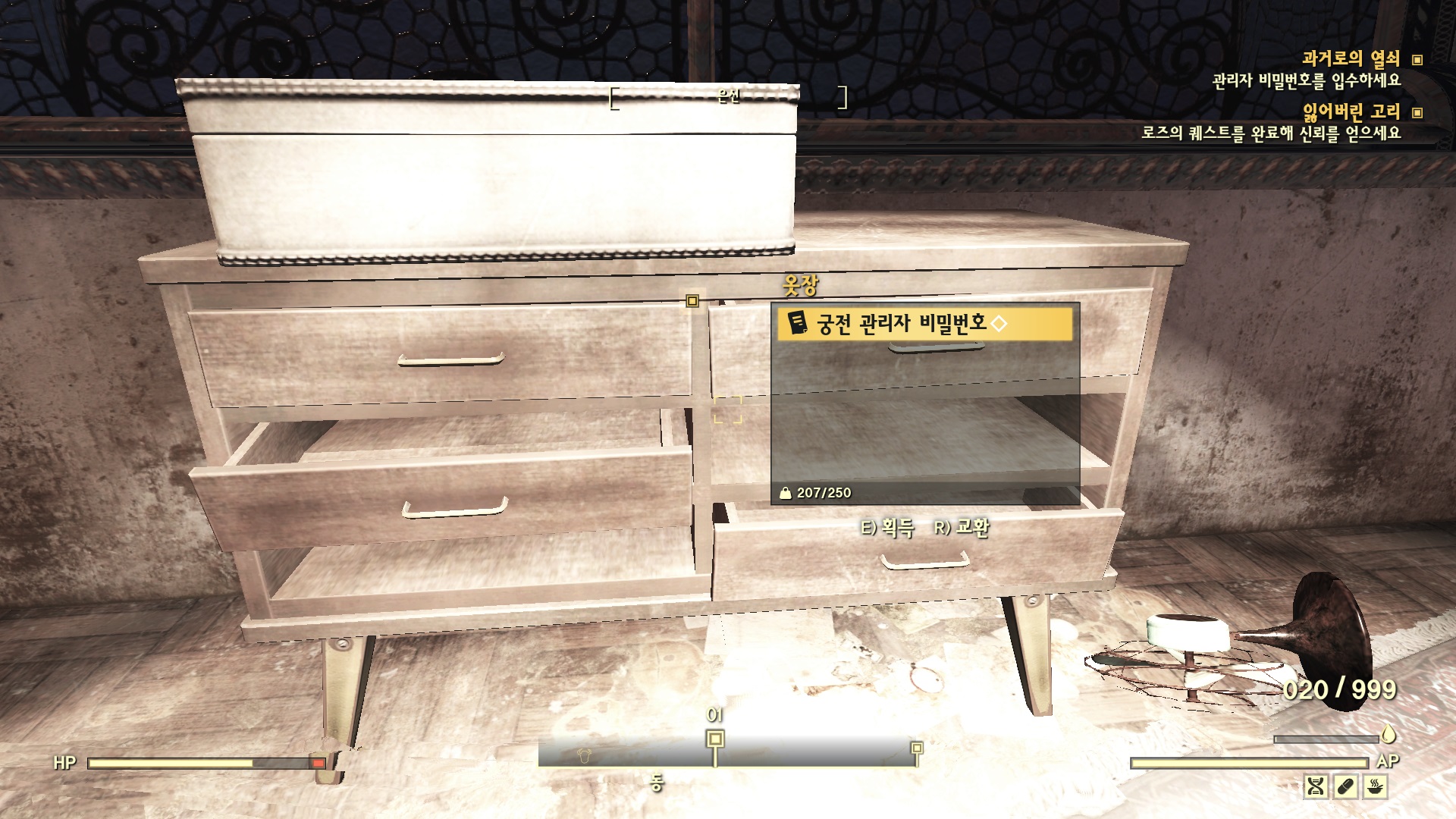 관리자 비밀번호를 입수 하기 위해 외전 길의 궁전으로 간다.