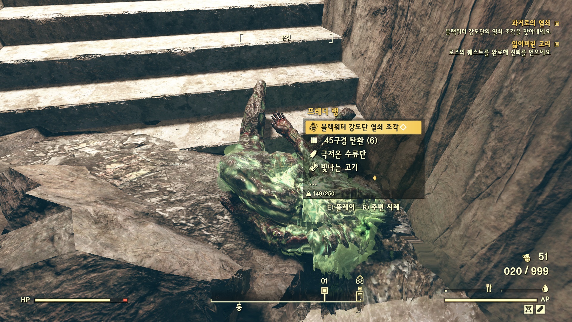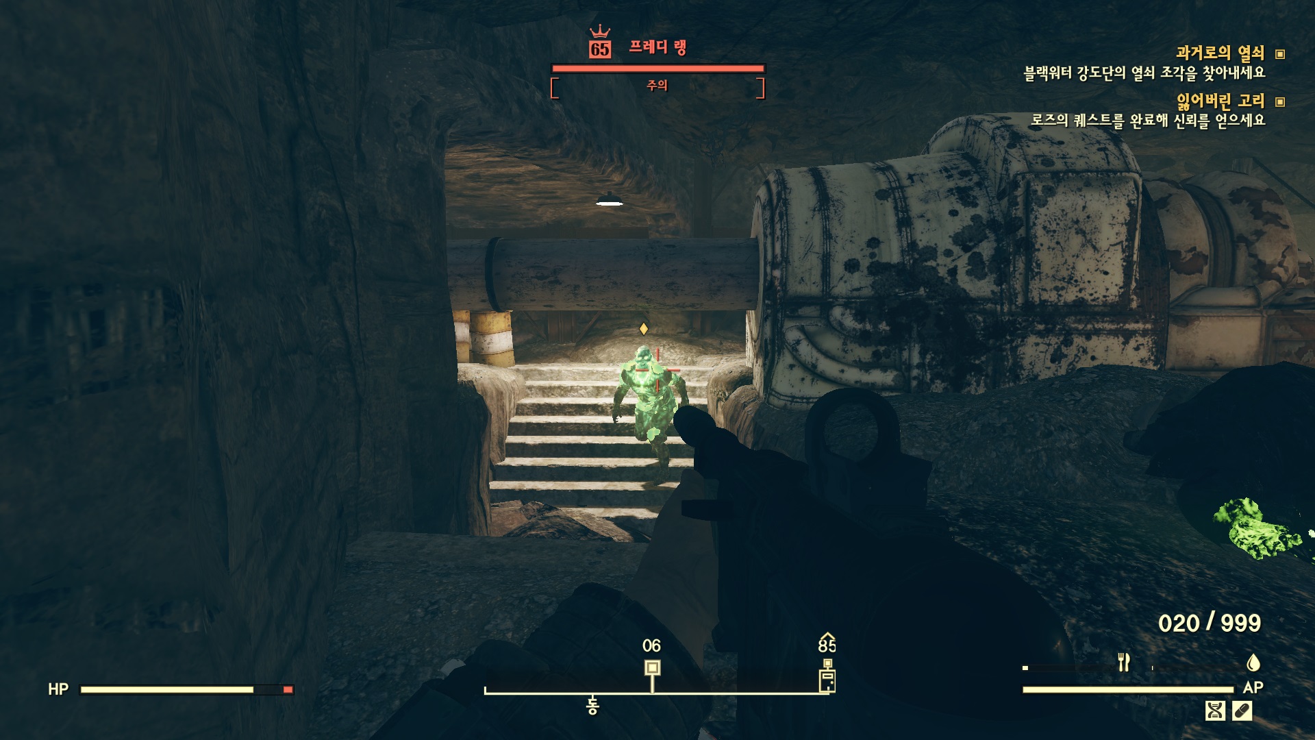 광산으로 쭉 들어가면 구울이 된 프레디 랭이 있다. 처치하고 '블랙워터 강도단 열쇠 조각'을 줏으면 된다.