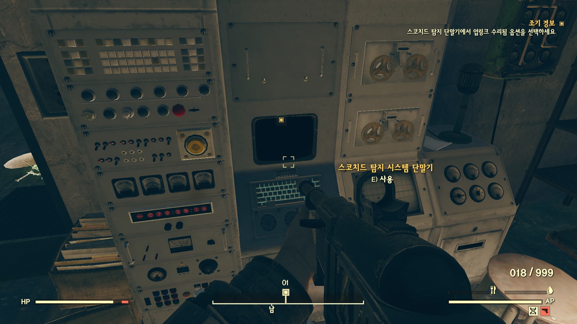 스코치드 탐지 시스템 단말기로 가서 '모터 업그레이드됨'을 선택하면 퀘스트가 완료되고 '재조립 필요 (Reassembly Required)' 퀘스트로 이어진다.